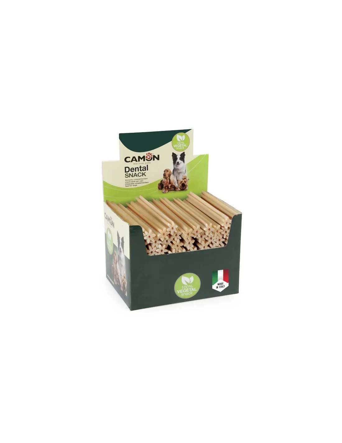 CAMON AB500 CAMONSTICK M es un snack natural para perros que ofrece una experiencia de sabor única y beneficiosa para la salud dental de tu amigo de cuatro patas. Estos palitos masticables están elaborados con ingredientes de alta calidad, lo que garantiza un producto seguro y sabroso. Con una longitud de 18 cm y un peso de 60 gramos, estos snacks son ideales para perros de tamaño mediano. El pack de 70 piezas garantiza un suministro abundante para recompensar a tu perro todos los días.