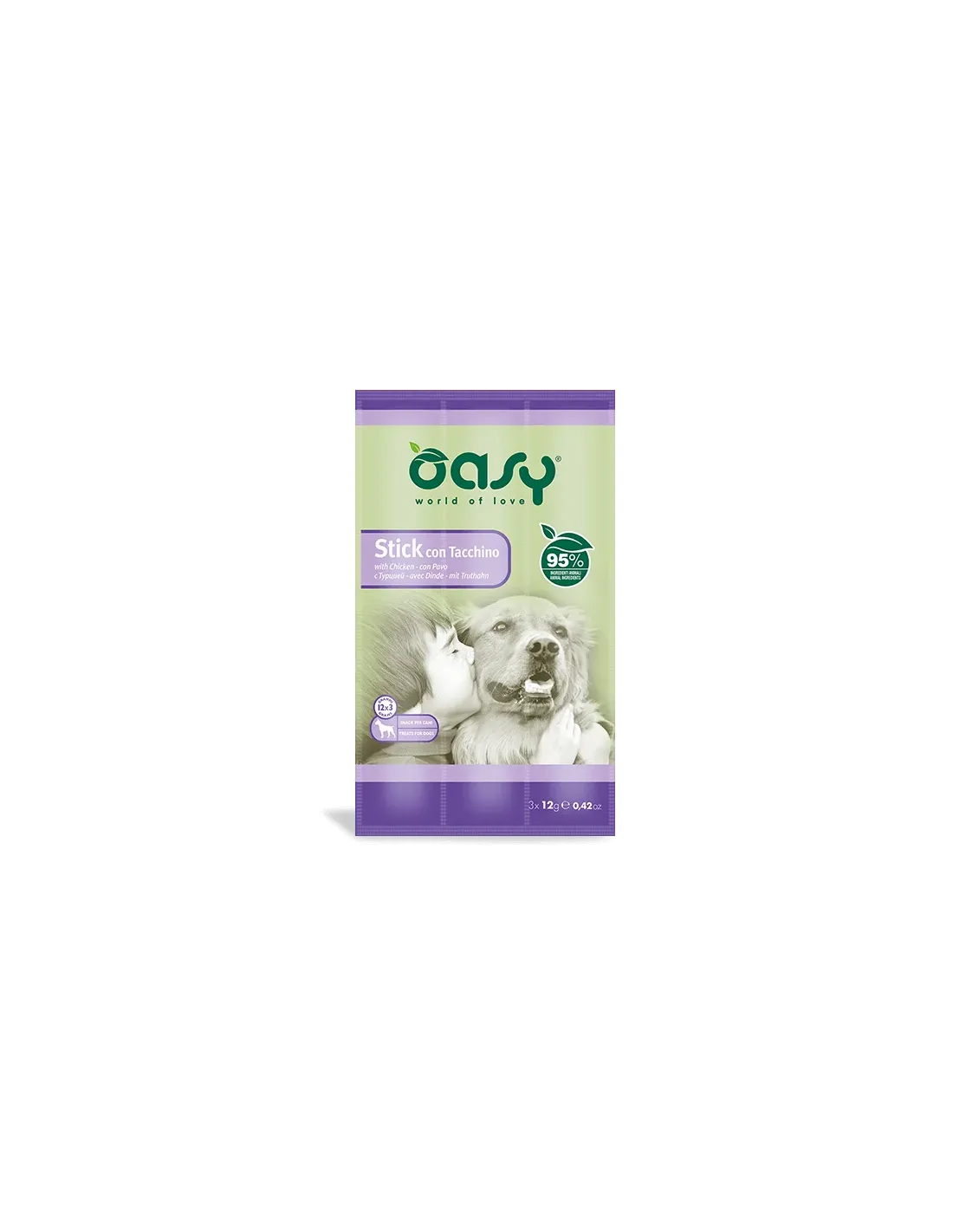 Oasy Dog Sticks Turkey ha sido formulado específicamente para perros de todos los tamaños y razas. Su composición los hace aptos para perros jóvenes, adultos y ancianos, aportando un aporte nutricional adecuado para cada etapa de la vida de tu amigo de cuatro patas.