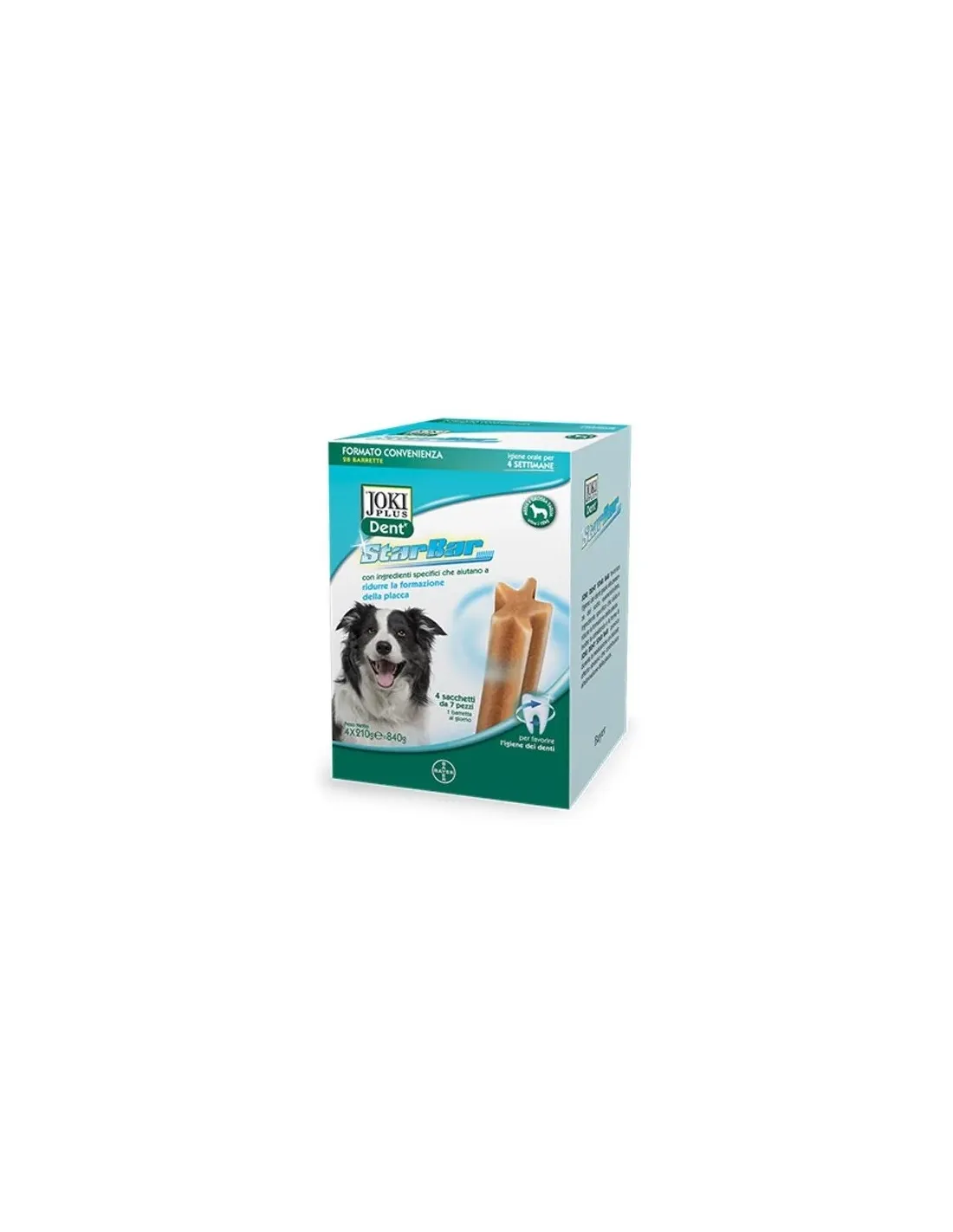 JOKI DENT CLASSIC MULTIPACK MEDIUM 28BAR es un alimento complementario para perros de tamaño mediano, diseñado para apoyar la higiene bucal diaria de tu amigo de cuatro patas. Este snack no sólo deleita el paladar de tu perro, sino que también ofrece beneficios tangibles para la salud de sus dientes.