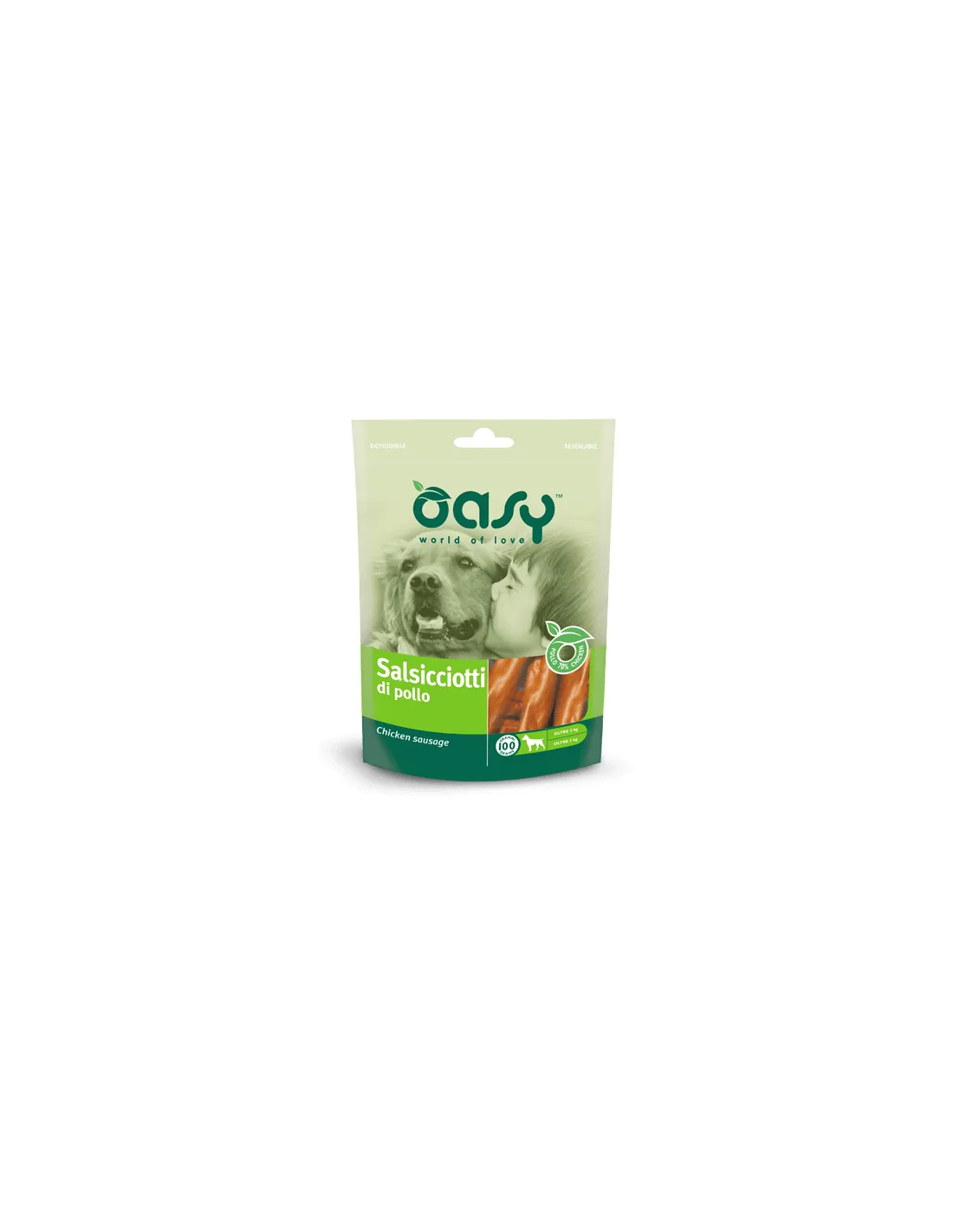 Oasy Snack Salchichas De Pollo 100 g para Perros es una excelente opción para premiar a tu amigo de cuatro patas. Elaborados con un 70% de pollo, estos snacks no solo deleitan el paladar de tu perro, sino que también ofrecen un importante impulso nutricional. Son perfectos para utilizar durante el entrenamiento o como pequeño premio durante el día.