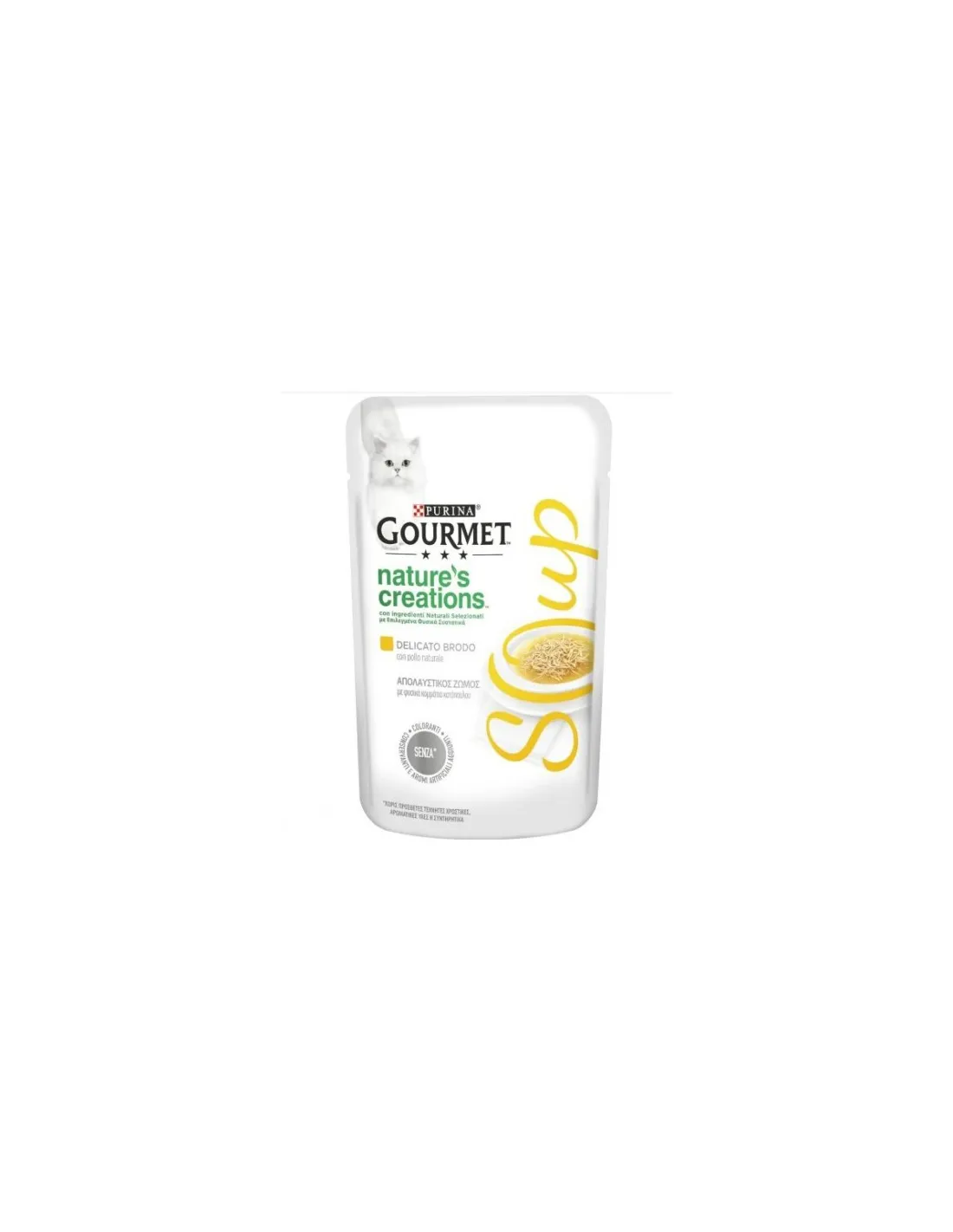 La sopa fue desarrollada por NESTLE' PURINA PETCARE IT. SpA, un nombre de confianza en el sector de la alimentación para mascotas, que garantiza la calidad y bondad de cada producto. El cuidado en la selección de los ingredientes y la delicadeza del caldo de pollo hacen de este producto una excelente opción para enriquecer la rutina dietética de tu gato.