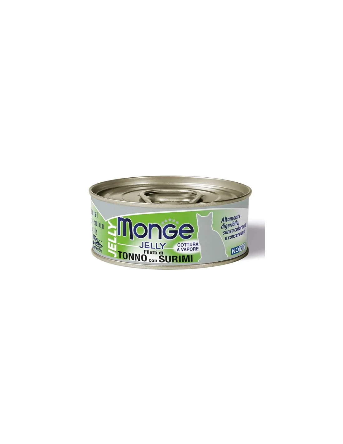 Alimento complementario para gatos, con delicioso atún con surimi, producido en Tailandia, con las características típicas de los productos a base de pescado de alta calidad: alta palatabilidad gracias al uso de ingredientes frescos, es rico en omega 3, rico en proteínas y con un bajo contenido en grasas, sin colorantes ni conservantes. Un sabor refinado, apto para los paladares más refinados. Ayuda al gato a mantenerse en buena forma y con un buen nivel de energía.