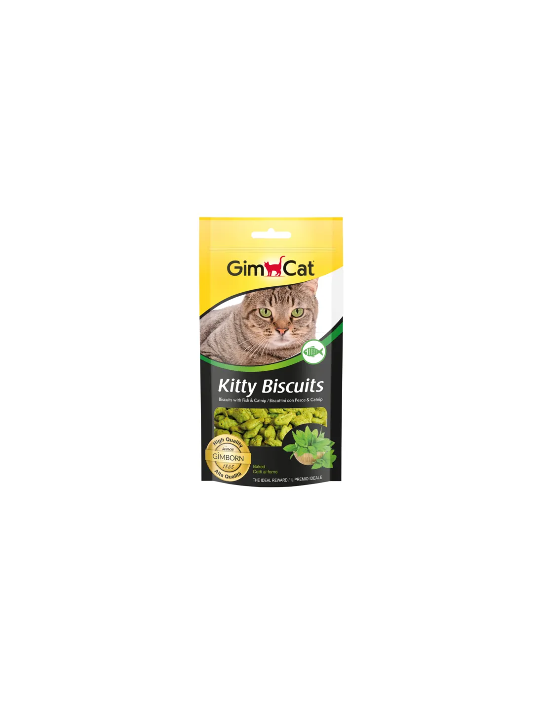 Gimcat Kitty Biscuits Pescado y Catnip son ideales para la alimentación diaria de tu gato. Estos snacks no sólo deleitan el paladar de tu mascota, sino que también ofrecen beneficios para la salud como apoyo a la digestión y estimulación mental gracias a la hierba gatera.