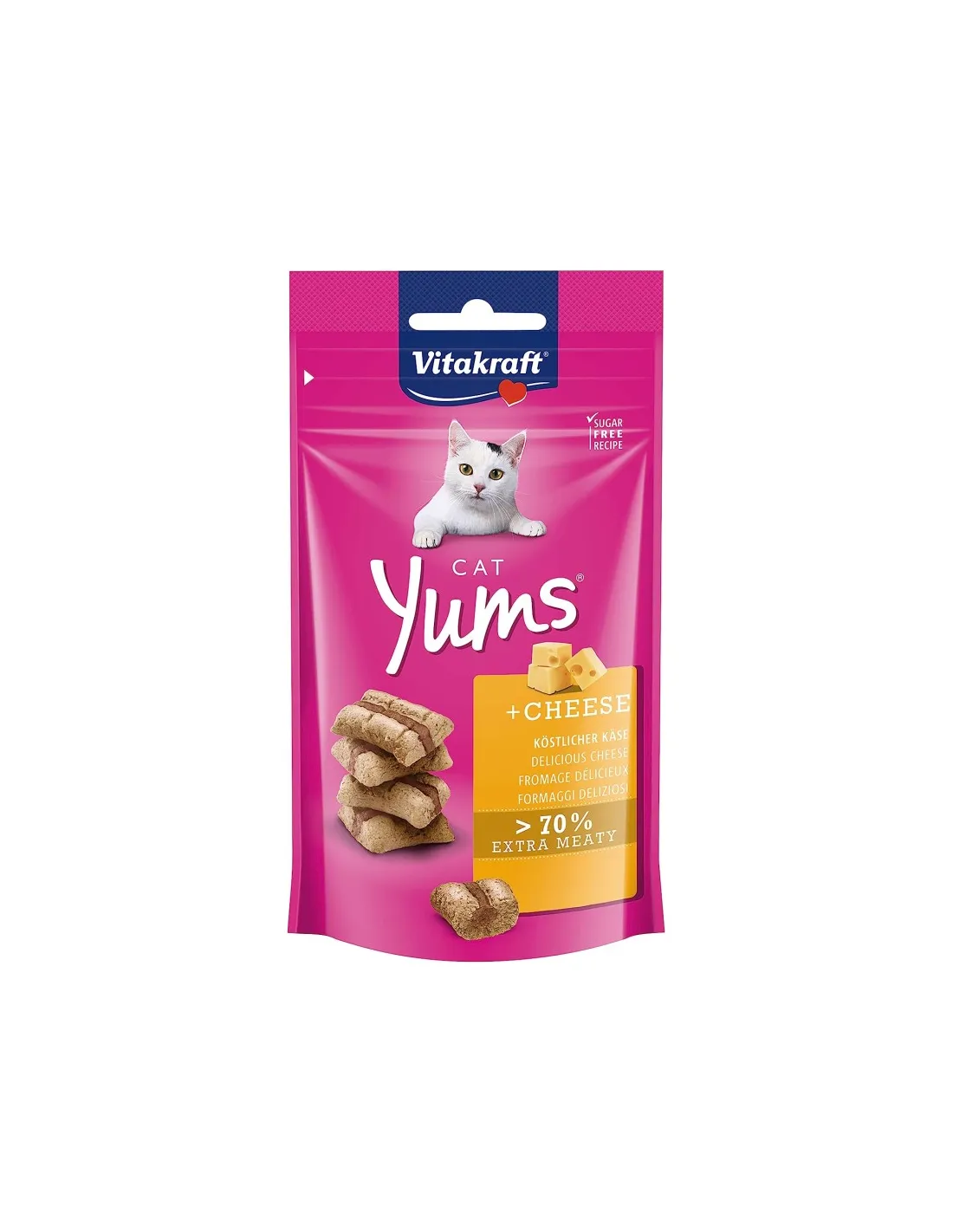 El producto "VITAKRAFT - Cat Yums - Queso 40gr" es un excelente ejemplo de snack para gatos que combina sabor y salud. Estos bocados se preparan con gran cantidad de carne, lo que los hace ricos y sustanciosos. El proceso de horneado no solo mantiene el relleno suave y suculento, sino que también garantiza que cada bocado sea seguro y saludable para el consumo felino.