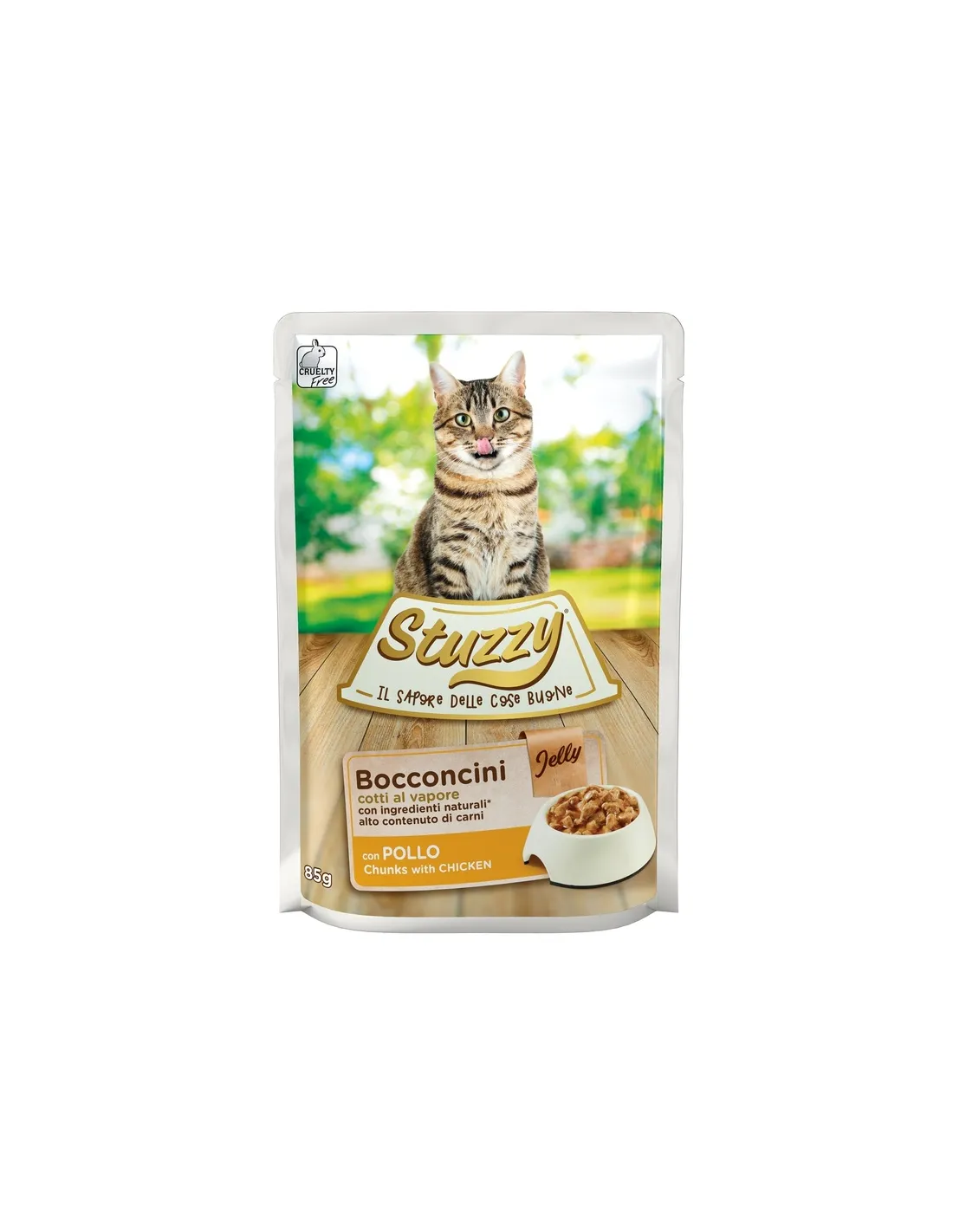 Stuzzy Cat Sterilized Bocconi Con Pollo es un alimento húmedo de alta calidad, específicamente formulado para cubrir las necesidades nutricionales de los gatos esterilizados. Este producto se presenta en trozos pequeños con pollo, asegurando una experiencia de sabor irresistible para tu felino. El bol de 85 gramos es ideal para mantener la frescura de los alimentos y conseguir que cada comida sea un placer para tu mascota.