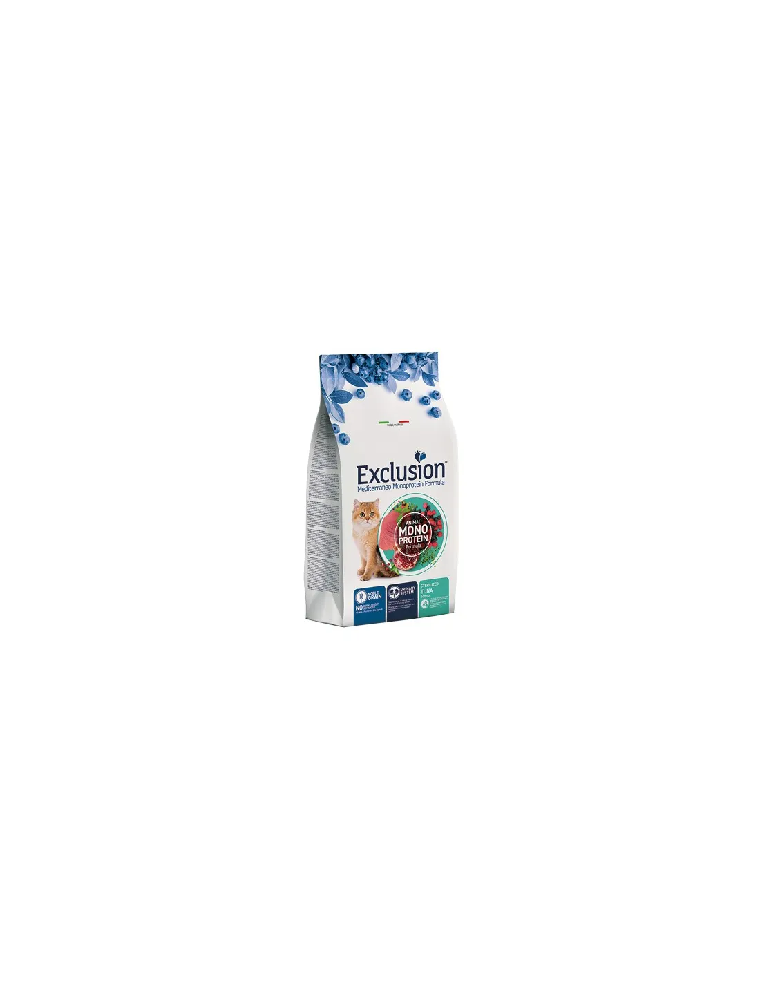 Exclusion Mediterraneo no contiene grasa de pollo, trigo, soja ni maíz, lo que lo hace ideal para gatos con sensibilidad alimentaria. Además, está enriquecido con Psyllium, útil para contrarrestar la formación de bolas de pelo, mejorando la digestión y la salud intestinal del gato.