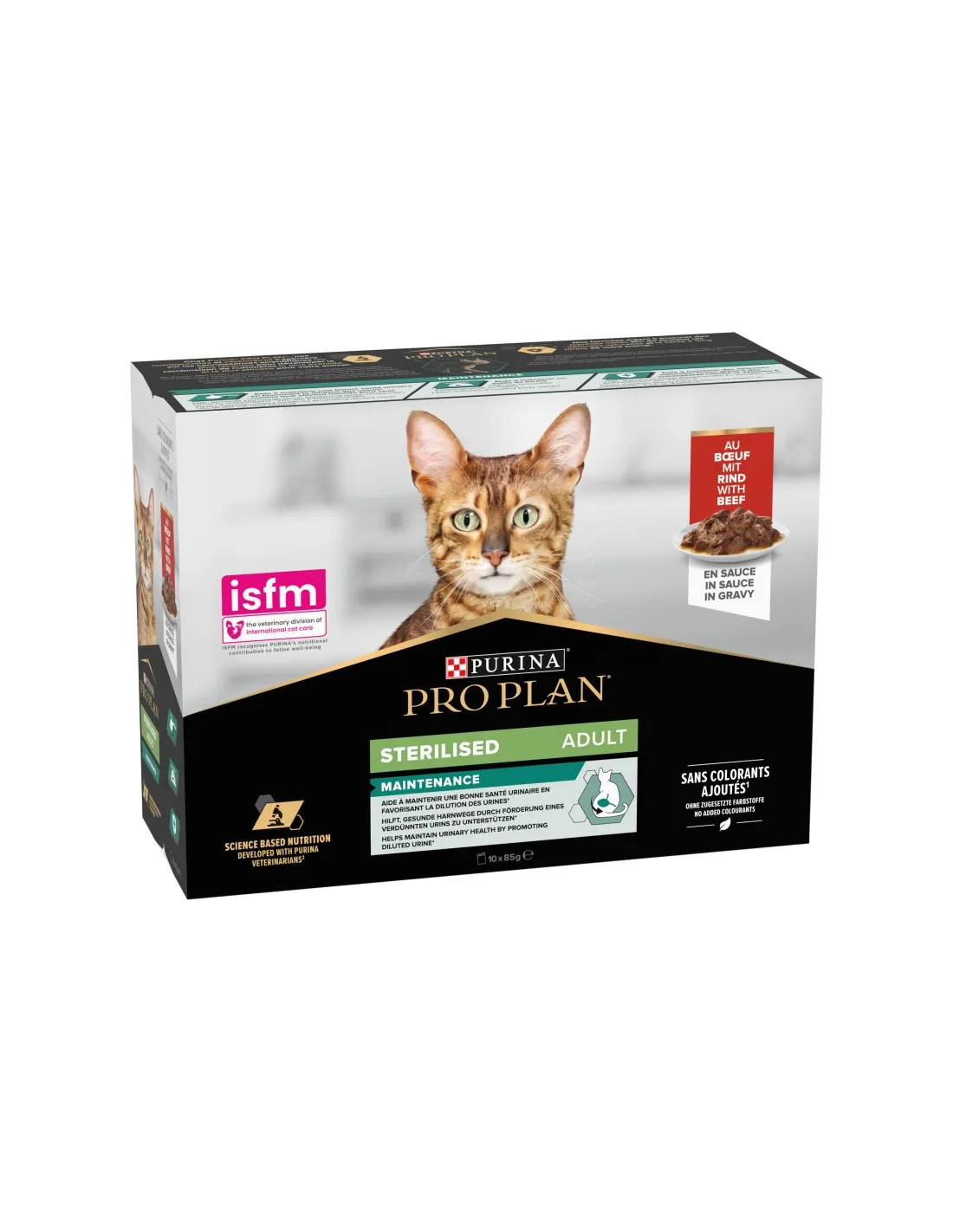 Pro Plan Cat Nutrisavour Esterilizado con Carne de Vacuno es un alimento húmedo completo y equilibrado para gatos esterilizados, presentado en prácticos sobres de 85 g. Cada multipack contiene 10 sobres que garantizan frescura y facilidad de administración.