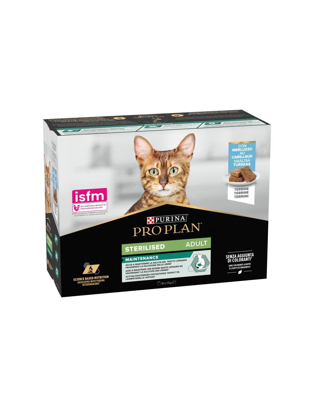 Pro Plan Cat Nutrisavour Esterilizado con Paté de Bacalao es un alimento completo y equilibrado para gatos esterilizados, presentado en prácticos sobres de 85 gramos. Este producto ha sido formulado específicamente para satisfacer las necesidades nutricionales de los gatos castrados, ayudando a mantener un peso corporal ideal y apoyando la salud urinaria.