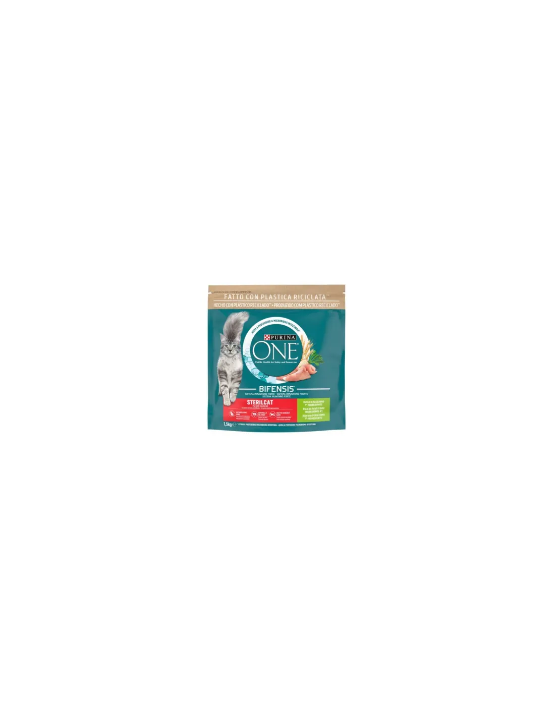 Con un envase de 1,5 kg, este producto garantiza un aporte nutricional equilibrado, favoreciendo el metabolismo equilibrado y el control del peso en gatos esterilizados.