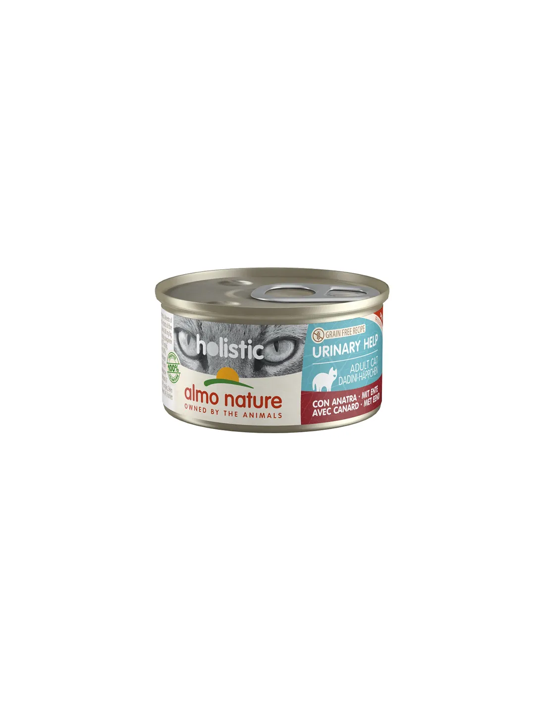 Almo Cat Holistic Urinary Help with Duck es un producto alimenticio y no un medicamento; sin embargo, ha sido formulado prestando atención a la seguridad y el bienestar del gato. El uso regular garantiza una buena tolerabilidad y el mantenimiento de las condiciones generales de salud, favoreciendo un equilibrio óptimo del sistema urinario sin riesgos de efectos secundarios propios de los preparados farmacológicos.