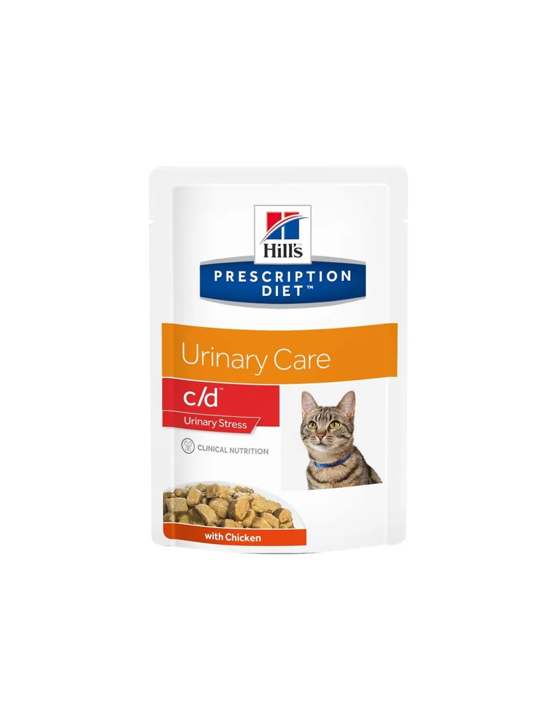 Hill's Prescription Diet Cat c/d Urinary Stress with Chicken está indicado para el tratamiento nutricional de gatos adultos con enfermedades del tracto urinario inferior (FLUTD), incluida la cistitis idiopática felina (CIF), urolitos de estruvita y oxalato de calcio.