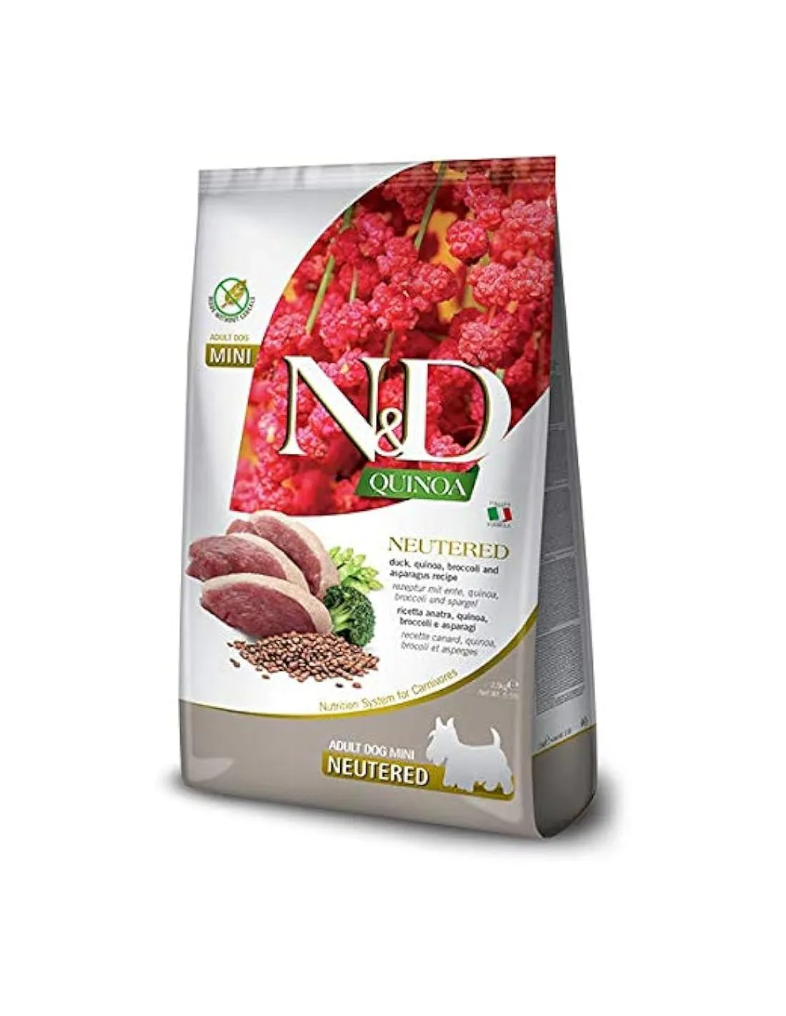 N&D Quinoa est une gamme fonctionnelle sans céréales développée pour le bien-être des chiens ayant des besoins nutritionnels spécifiques. La formule est composée à plus de 90 % de protéines d'origine animale, ainsi que de quinoa, un superaliment fonctionnel, et d'extraits de plantes aux propriétés nutritionnelles importantes.