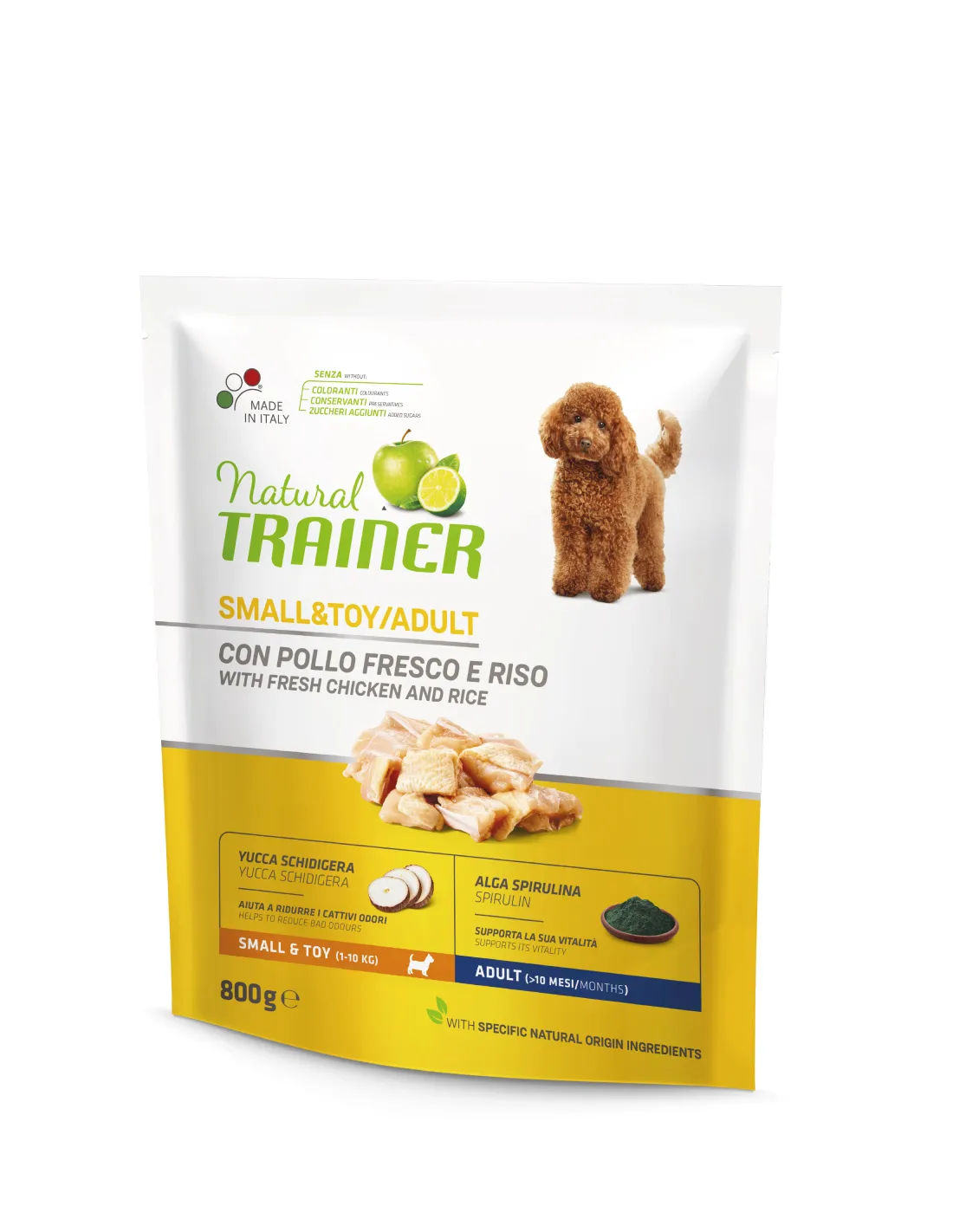 Trainer Small/Toy Chicken est un aliment complet et équilibré spécialement formulé pour les chiens adultes de petite taille et jouets. Sa composition comprend de la viande de poulet fraîche, garantissant un apport élevé en protéines d'origine naturelle. Idéal pour garder votre chien en bonne santé, favorisant sa vitalité grâce aux principes actifs et aux nutriments essentiels.