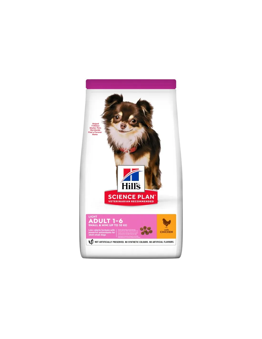 Hill's Science Plan Light Small & Mini au poulet convient aux petits et très petits chiens âgés de la première à la sixième année, pesant moins de 10 kg. Il est particulièrement adapté aux chiens ayant des problèmes de poids, car il a été formulé pour répondre à leurs besoins énergétiques quotidiens.