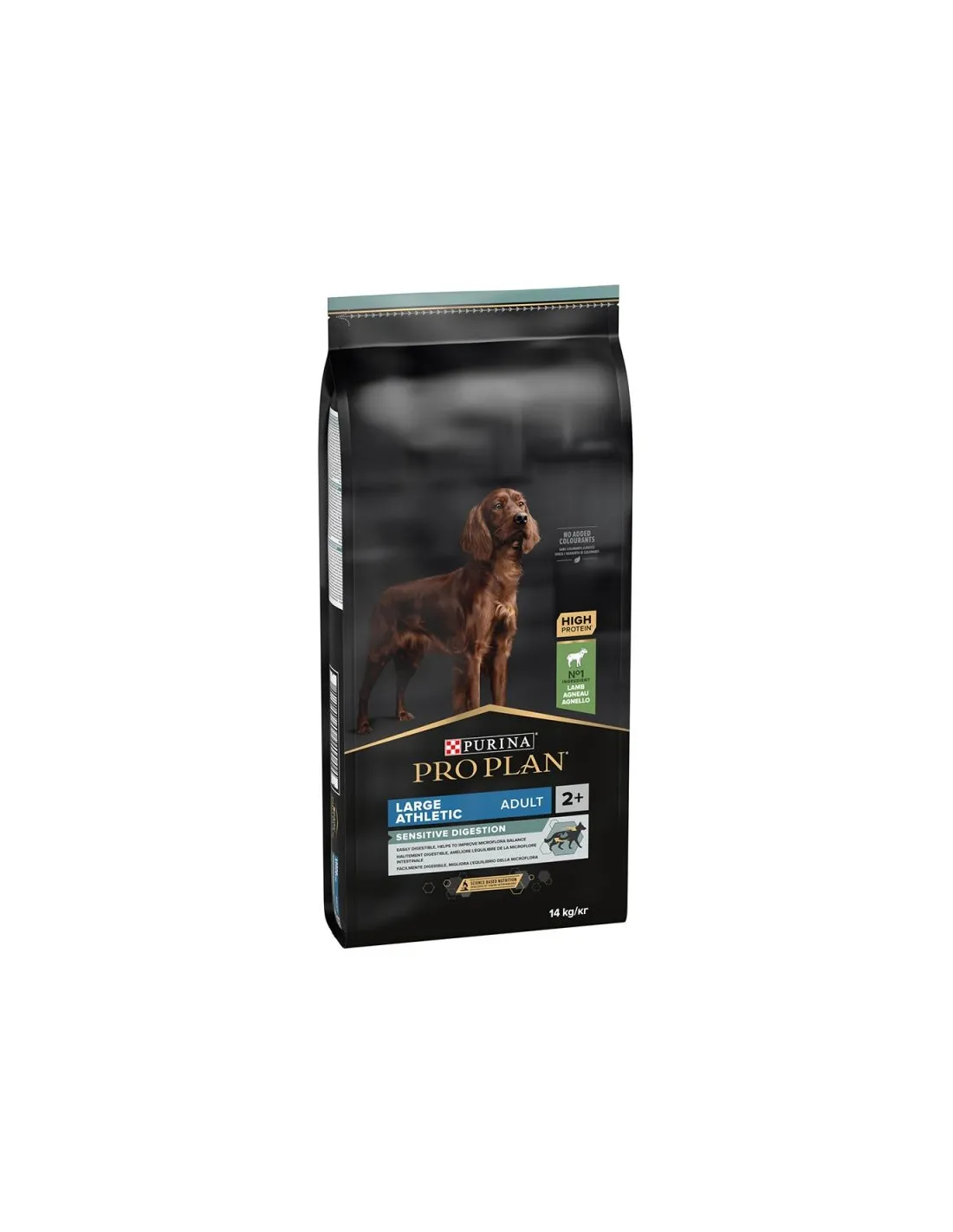 Purina Pro Plan Large Athletic Adult Optidigest Sensitive Digestion Lamb est un aliment complet et équilibré conçu spécifiquement pour les chiens adultes de grande taille ayant une carrure athlétique et un système digestif sensible. Ce produit est formulé pour favoriser une digestion optimale grâce à la présence d'agneau comme principale source de protéines et de riz, facilement digestible.