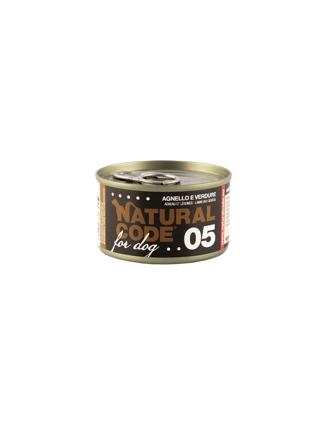 L'agneau et les légumes Natural Code 05 peuvent être servis tels quels ou légèrement réchauffés, pour rehausser l'arôme et l'appétence du repas. Il est conseillé de diviser la ration quotidienne en deux ou plusieurs administrations, en équilibrant l'apport calorique comme indiqué par le vétérinaire ou par les directives relatives au poids corporel idéal et à l'activité du chien.