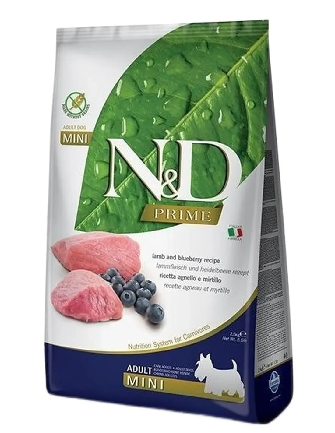 agneau (26%), protéines d'agneau déshydratées (25%), patate douce, œufs déshydratés, hareng, protéines de hareng déshydratées, graisse de poulet, huile de poisson (de hareng), fibres de pois, carottes séchées, farine de luzerne, inuline, fructooligosaccharides, extrait de levure (source de manno-oligo-saccharides), myrtille séchée (0,5%), pomme séchée, grenade séchée, orange douce séchée, épinards séchés, enveloppes et graines de psyllium (0,3%), chlorure de sodium, levure de bière séchée, curcuma (0,2%), extrait d'aloe vera, glucosamine, sulfate de sodium chondroïtine.