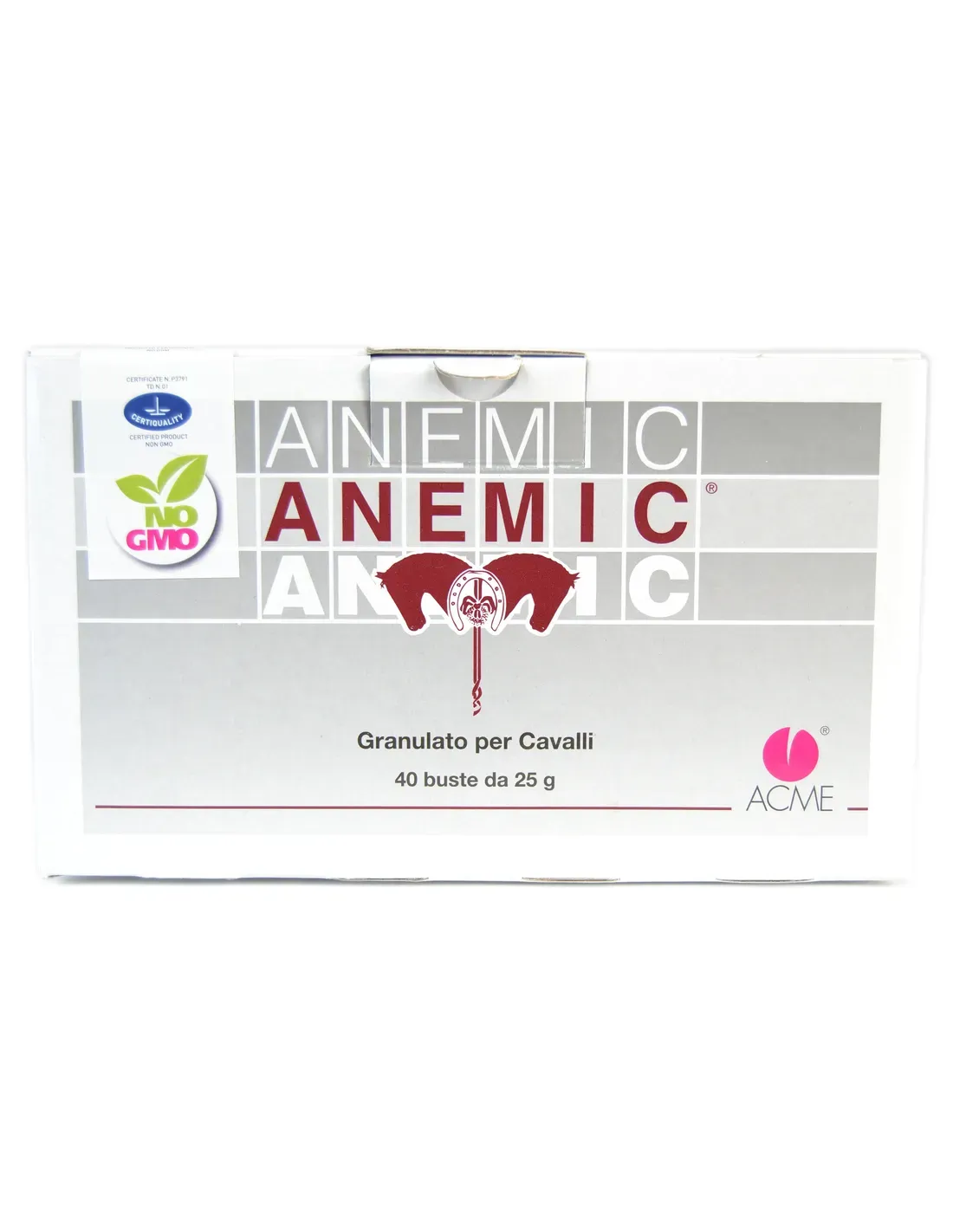 Anemic Acme est indiqué pour le traitement des états anémiques chez les animaux, dus à des carences nutritionnelles, à des pathologies chroniques ou aiguës qui compromettent la production de globules rouges et d'hémoglobine. Le produit contribue à améliorer la qualité du sang, en facilitant le transport de l'oxygène vers les tissus et en augmentant les défenses de l'organisme contre les infections et autres affections débilitantes.