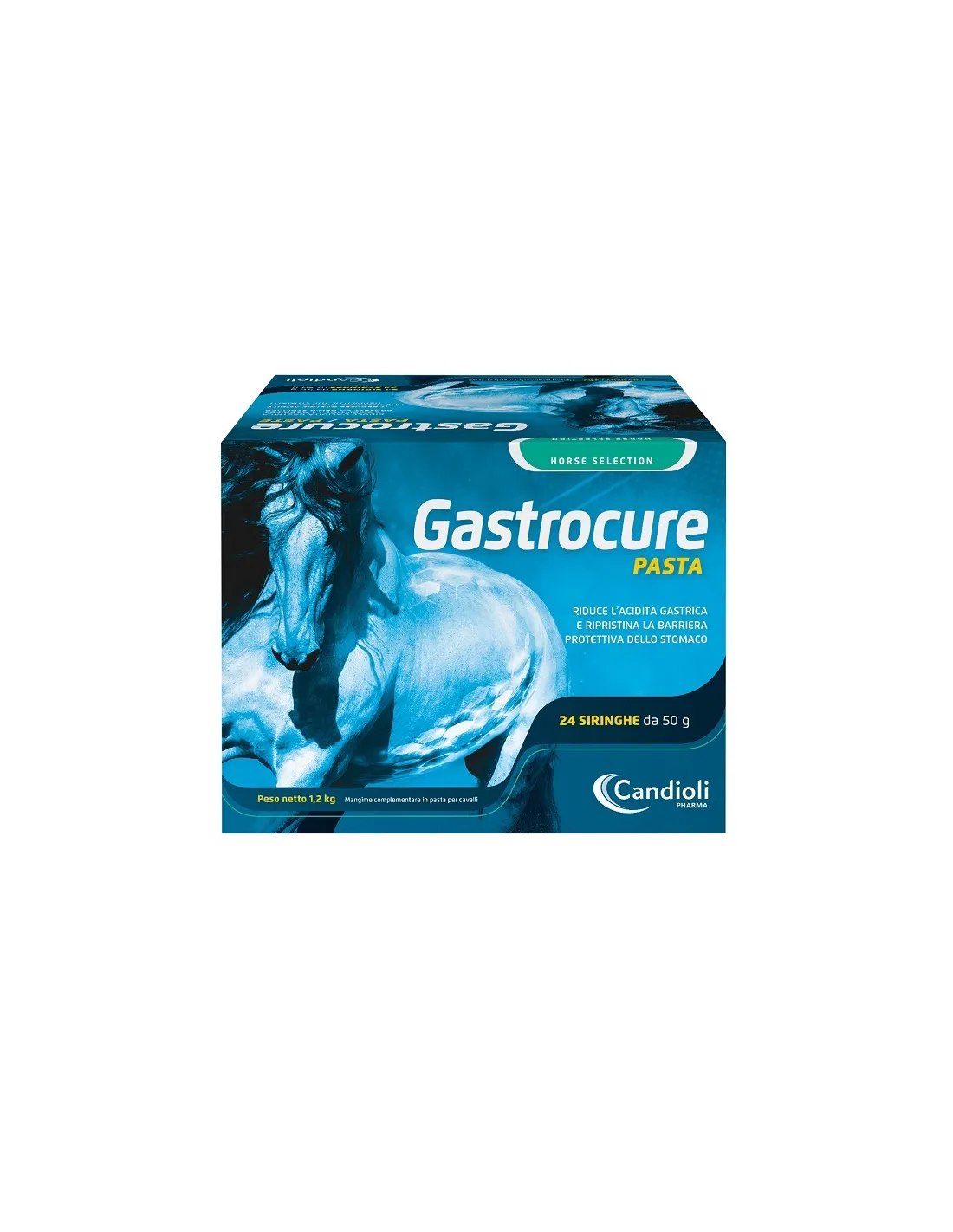 Candioli Gastrocure est un complément gastroprotecteur pour chevaux, présenté sous forme de pâte en seringues de 50 g, vendu en boîte de 24 doses. Ce produit est conçu pour protéger la muqueuse gastrique du cheval des effets négatifs du stress.