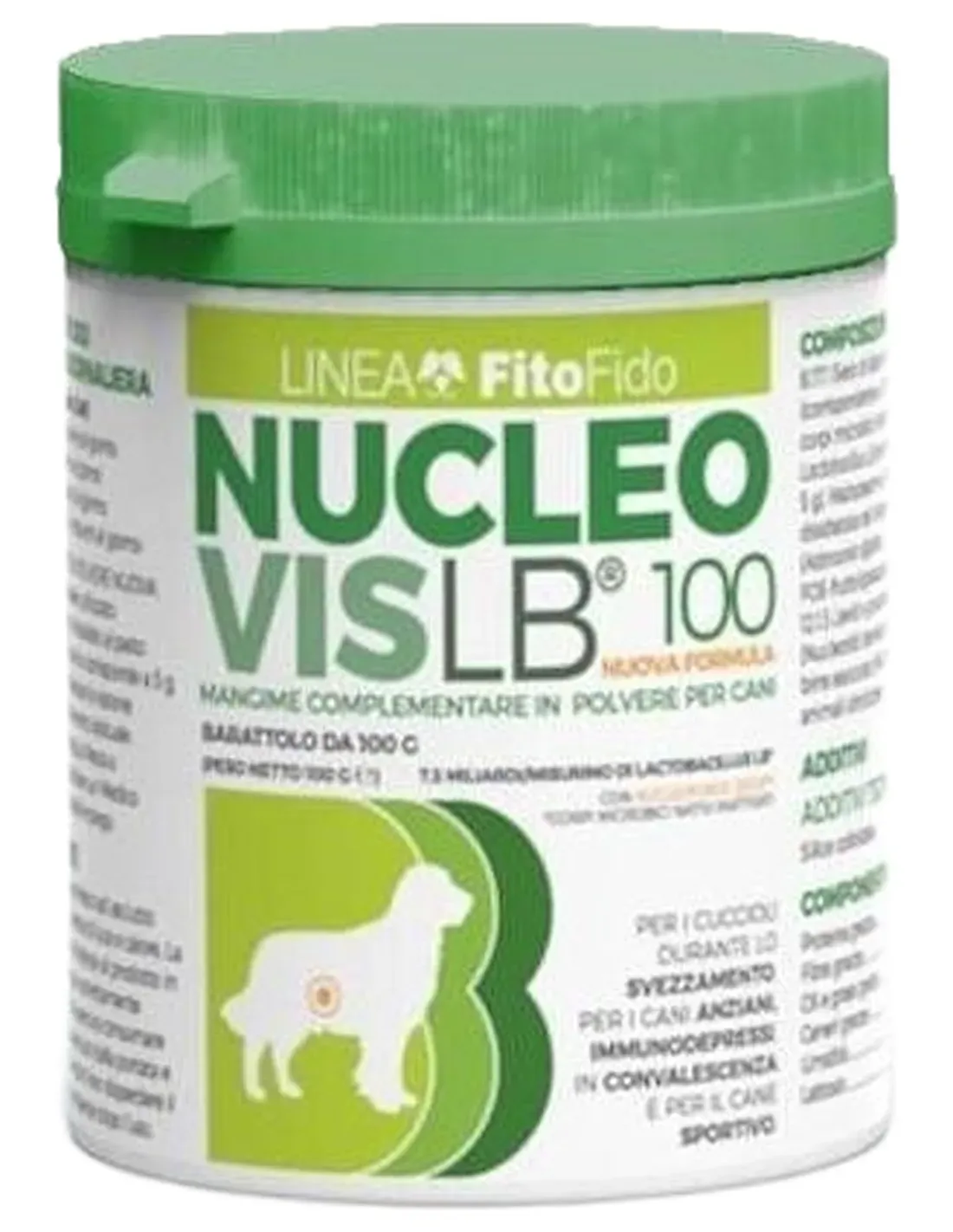 NUCLEOVIS LB ® 100 POUDRE est utile chez le chiot lors du sevrage, chez le chien âgé, et en convalescence en favorisant une activité digestive normale et une réponse immunitaire physiologique. Chez les chiens sportifs, il soutient l'activité stressante en améliorant le processus de récupération.