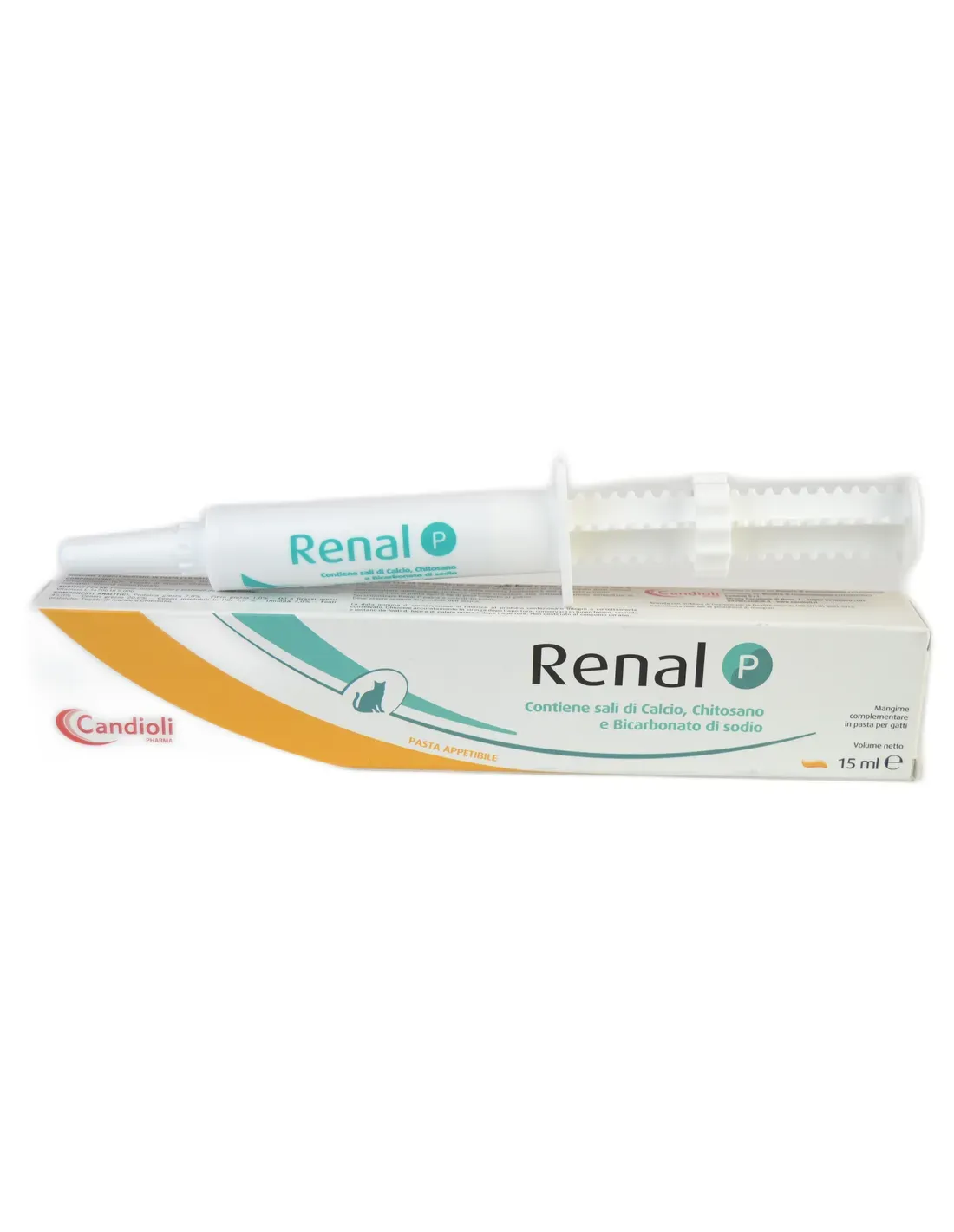 La pâte rénale p apporte des minéraux (sels de calcium et bicarbonate de sodium) et des polysaccharides (chitosane) utiles au maintien des conditions métaboliques normales de l'animal et au bon fonctionnement des voies urinaires.