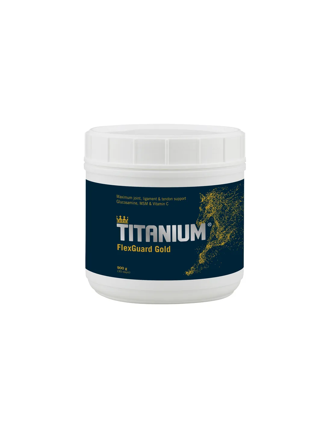 TITANIUM® FlexGuard Gold est un complément alimentaire en poudre avancé, spécialement développé pour offrir un soutien complet au système musculo-squelettique des chevaux. Ce produit a été soigneusement formulé pour aider les chevaux, en particulier ceux qui suivent des régimes d'entraînement intensifs ou participent à des compétitions de haut niveau. Il est disponible en deux formats pratiques, 600 g pour un cycle de 20 jours et 900 g pour un cycle de 30 jours, et comprend un gobelet doseur pour assurer une bonne administration du produit.