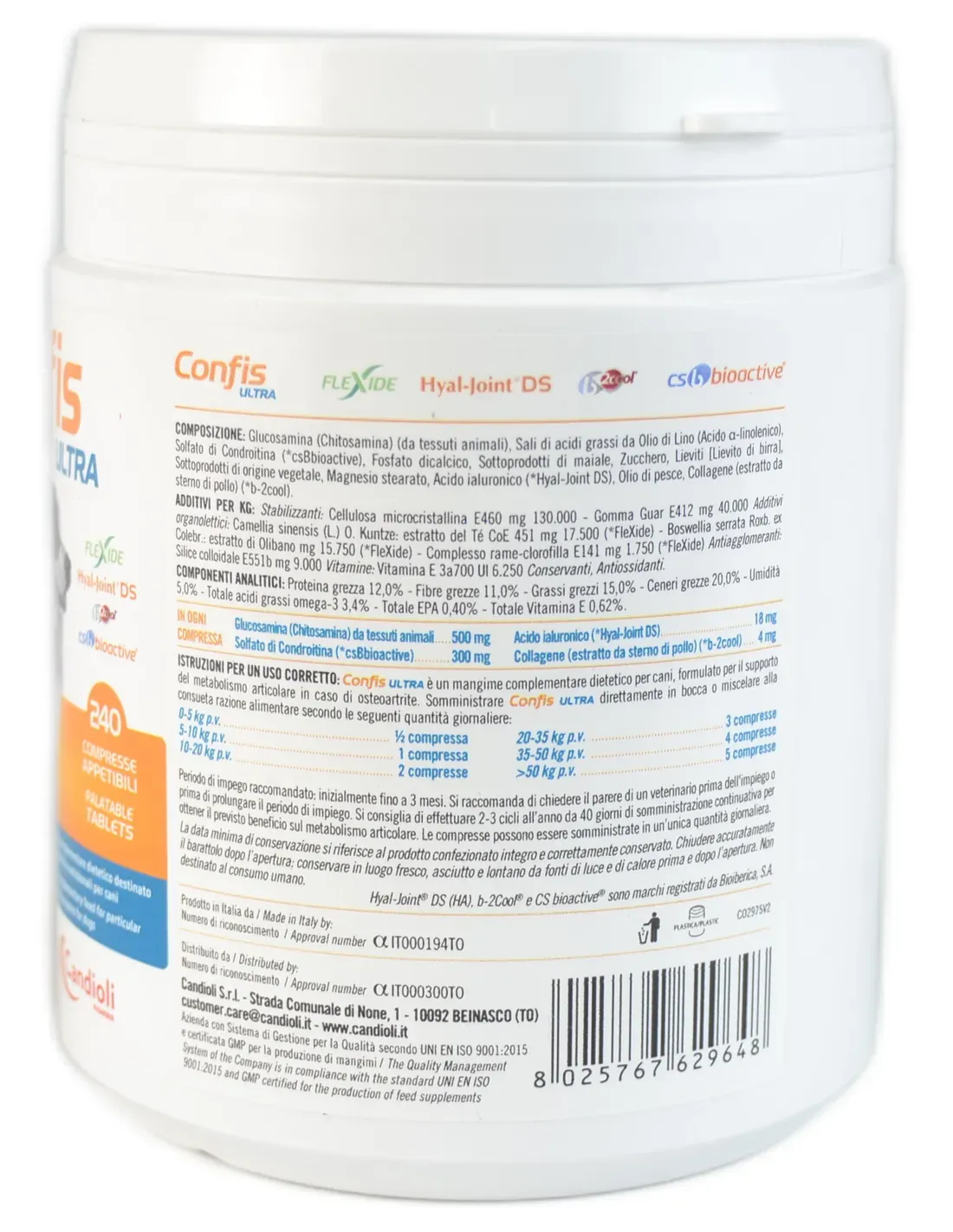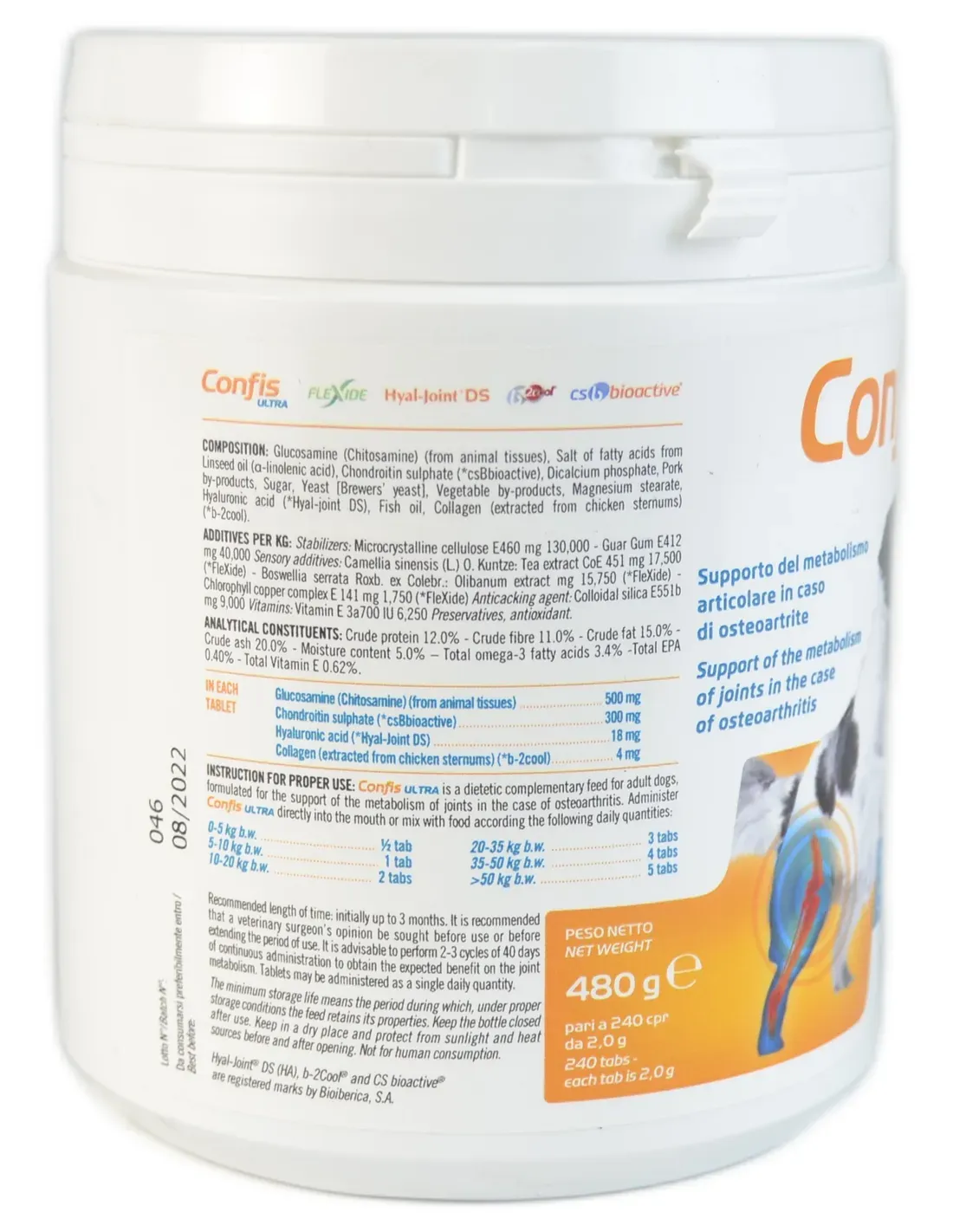 L'utilisation de Confis Cane Ultra est recommandée aussi bien pour les problèmes inflammatoires que dégénératifs : elle réduit la destruction du collagène, l'inflammation et les douleurs articulaires, améliore la fonction articulaire.