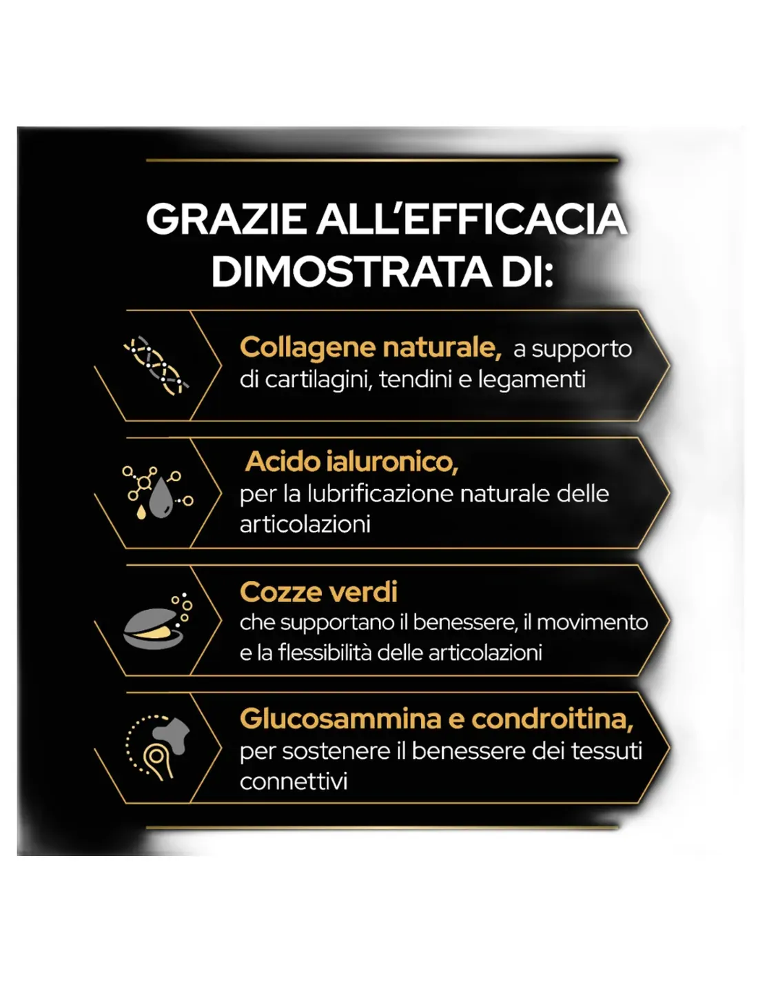 Composition : Moules vertes déshydratées (50%), sulfate de glucosamine (25%), membrane d'œuf* (20%), sulfate de chondroïtine (4%), acide hyaluronique (0,15%). *source de collagène Composants analytiques : Protéines : 55,8% | Matières grasses brutes : 4,0 % | Cendres brutes : 13,5% | Fibre brute: 0,4% | Collagène : 3,0 %. Ration journalière recommandée (g/jour) Poids du chien (kg) | Quantité (en cuillère à soupe) : 1-5 | 1⁄3 ; 6-17 | 2⁄3 ; 18-34 | 1 ⁄ 3 ; 34 | 2