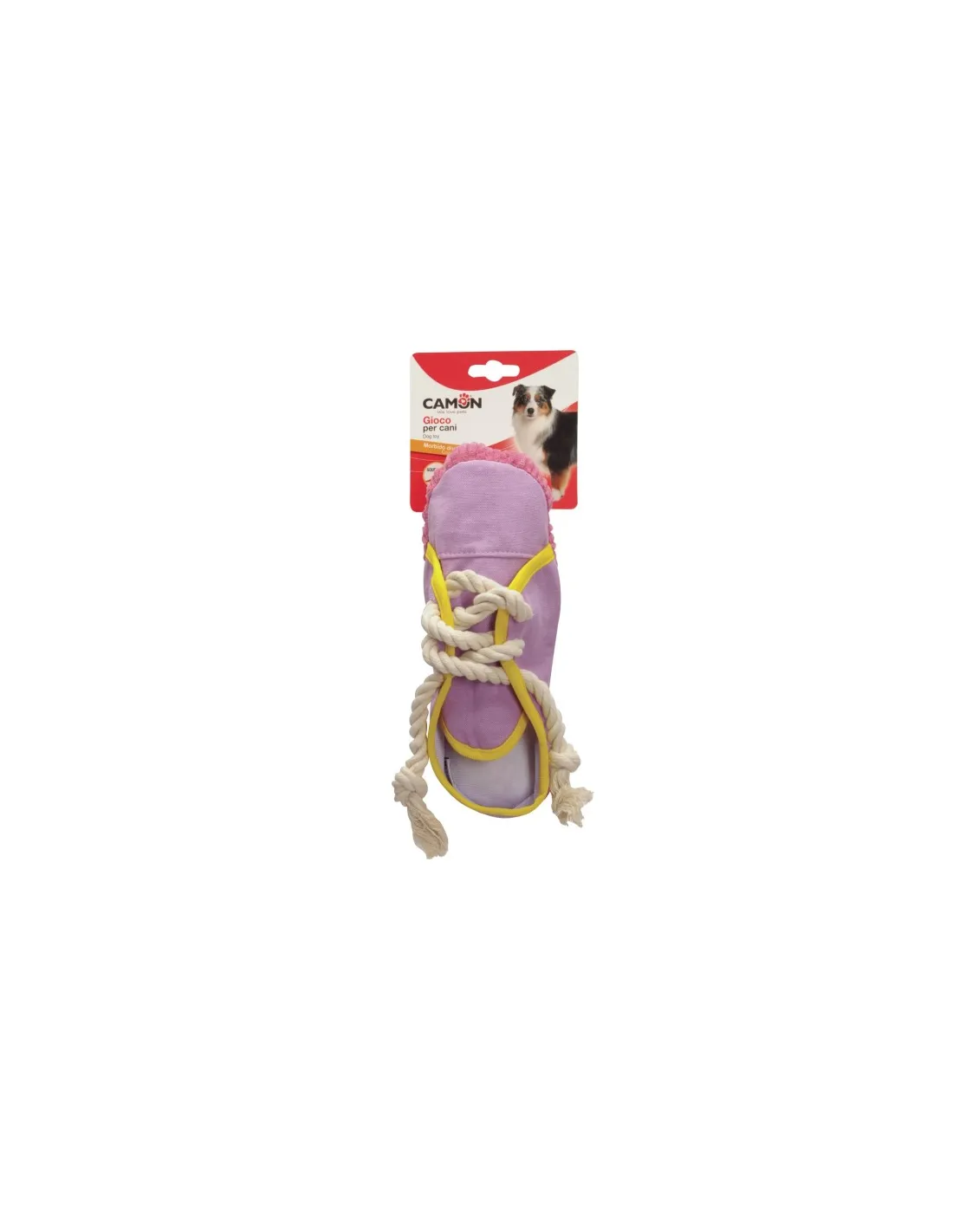 Camon Scarpa : Simule une chaussure en polyester colorée, avec un couineur et des lacets en corde qui captent l'attention du chien et stimulent le jeu. Dimensions : 26 cm.