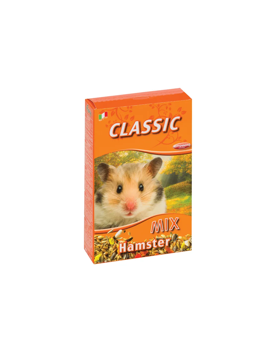 Fiory Hamster Mix Classic est un aliment composé spécifiquement pour les hamsters. Ce produit a été formulé pour offrir une alimentation équilibrée et complète à vos petits amis rongeurs. Le mélange est composé d'une variété de graines, de céréales et de légumes séchés, offrant une alimentation variée et nutritive.