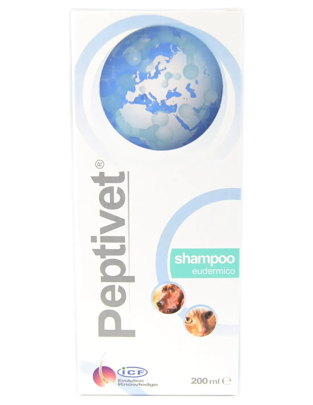 Peptivet Shampoo d'ICF est un shampooing eudermique formulé avec le peptide breveté AMP2041 pour chiens et chats.