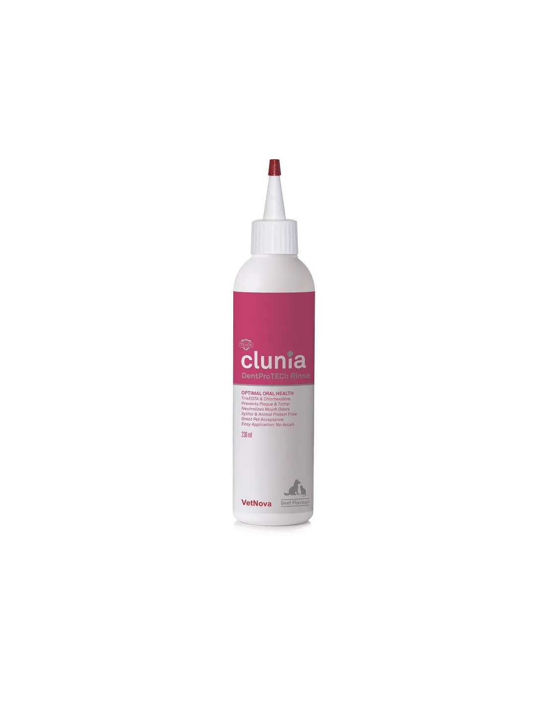 Clunia Dentprotech Rinse 236ML est indiqué comme adjuvant dans la prévention des maladies bucco-dentaires récurrentes chez les animaux de compagnie, notamment la plaque dentaire, le tartre, la gingivite, la parodontite et l'halitose. Son utilisation est recommandée pour toutes les situations dans lesquelles une attention particulière à la santé de la cavité buccale est requise, comme chez les sujets prédisposés à l'inflammation des gencives ou ayant des dents déjà compromises. Il peut être utilisé aussi bien pour les chiens que pour les chats de toutes tailles et de tous âges, y compris les chiots et les sujets âgés, offrant une solution sûre et efficace même pour des périodes d'utilisation prolongée.