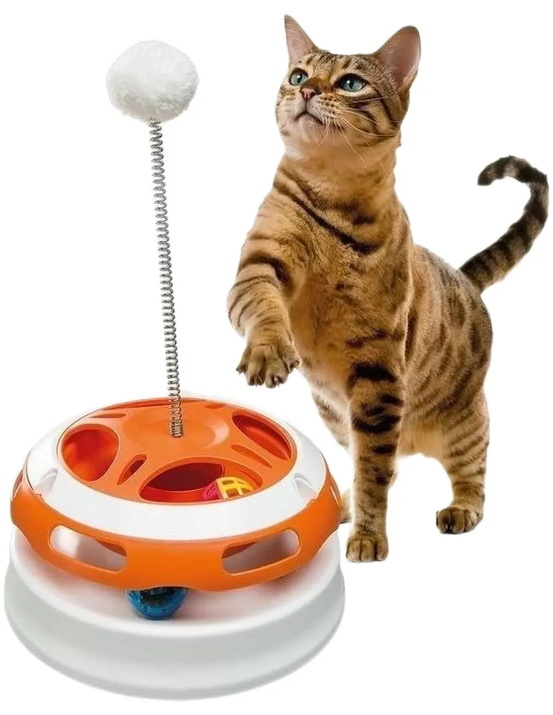 Jouet pour chat avec carrousel, balles et lumières LED qui stimule la curiosité et combat l'ennui. Sûr, amusant et parfait pour garder votre chat actif et heureux.