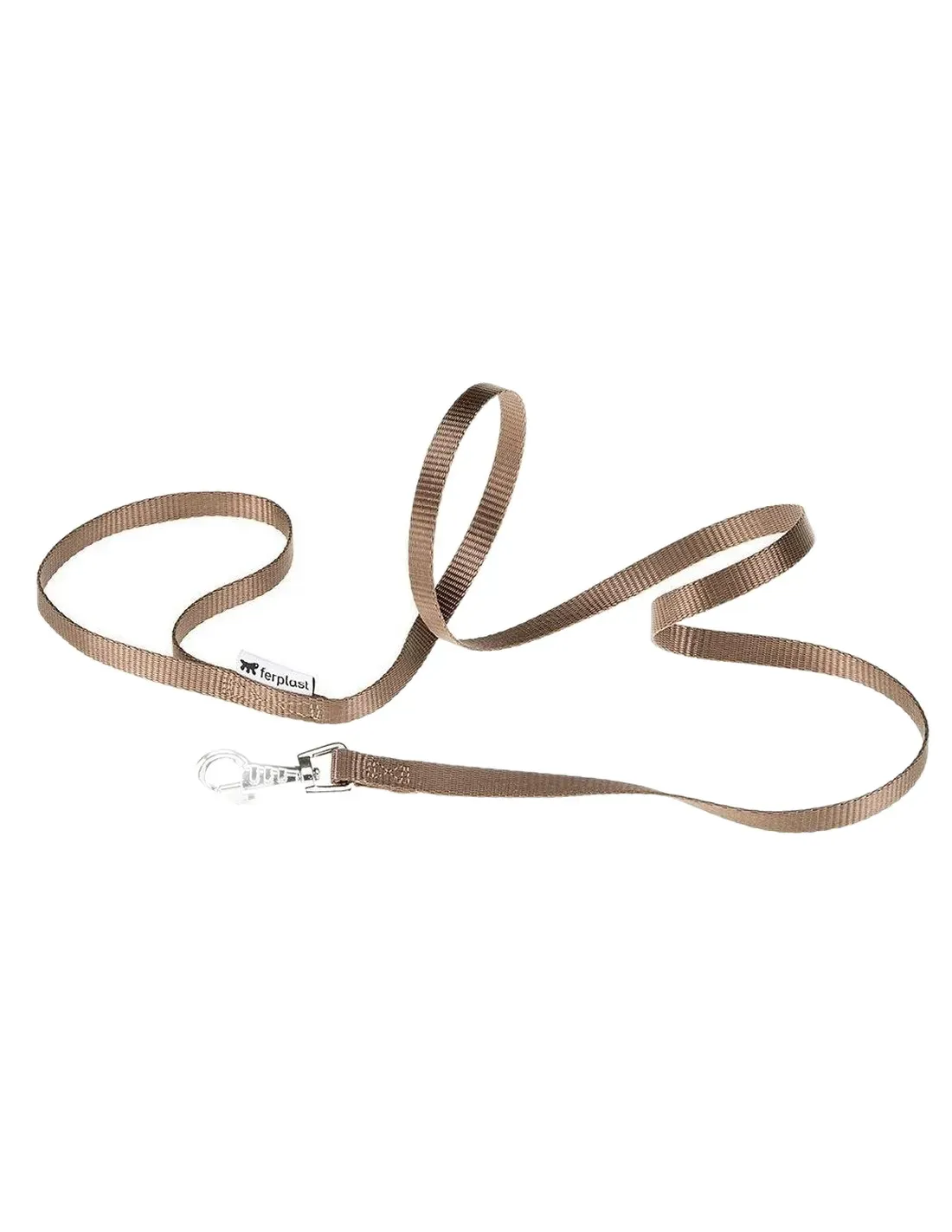 La laisse de marche Ferplast Club modèle g10/120 de couleur marron est fabriquée en nylon résistant et léger. Le mousqueton en métal chromé garantit une fixation sûre et rapide au collier du chien.
