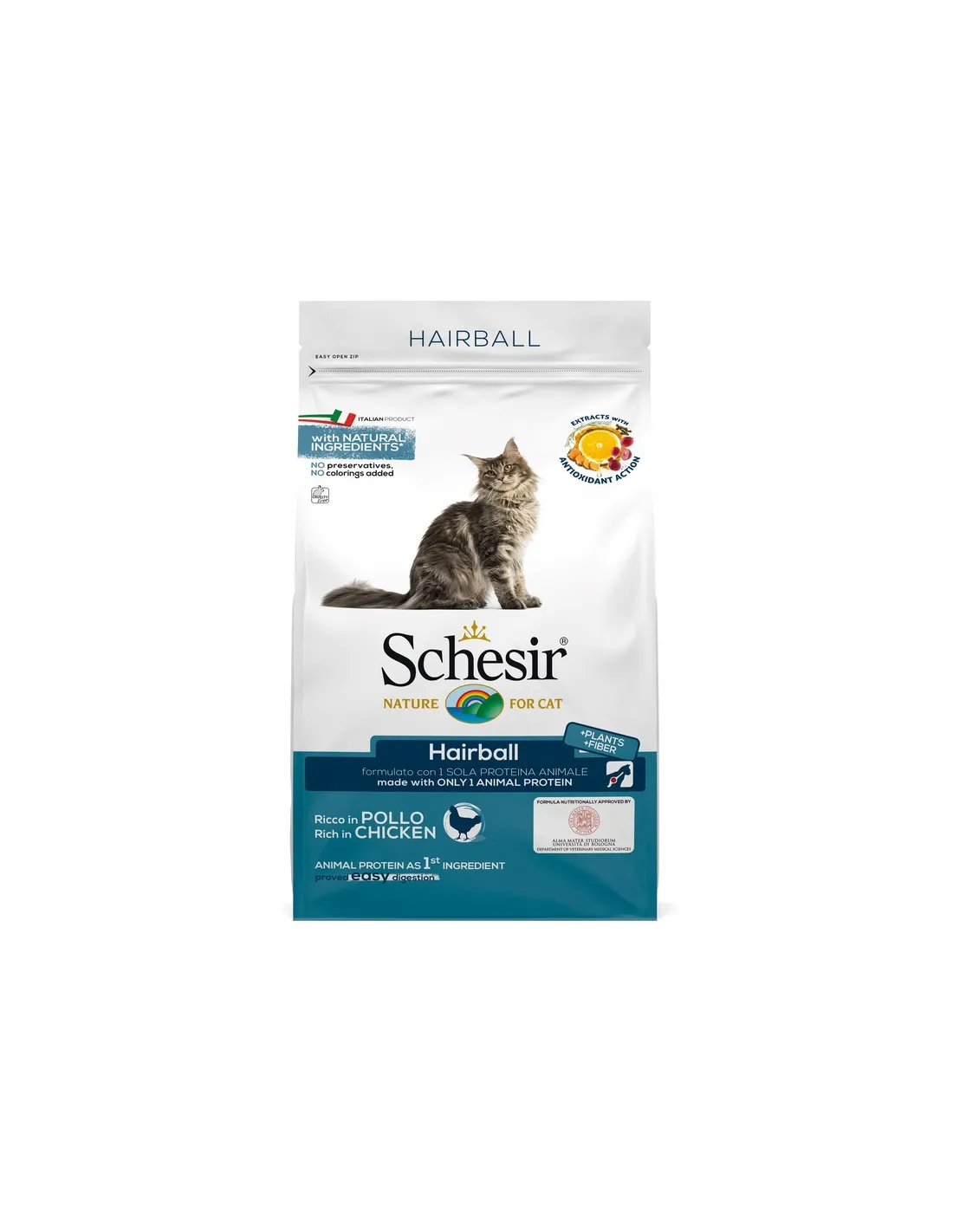 Le produit SCHESIR GATTO MAIN HAIRBALL GR 1500 est conditionné dans un sachet scellé pour conserver la fraîcheur et l'intégrité des aliments. Les croquettes sont d'une taille et d'une forme adaptées pour stimuler la mastication et nettoyer les dents pendant la tétée. Le produit Eukanuba Hairball Control est présenté en emballage de 2 kg, avec des croquettes spécialement conçues pour les chats adultes, pour apporter une solution complète et équilibrée contre les boules de poils.