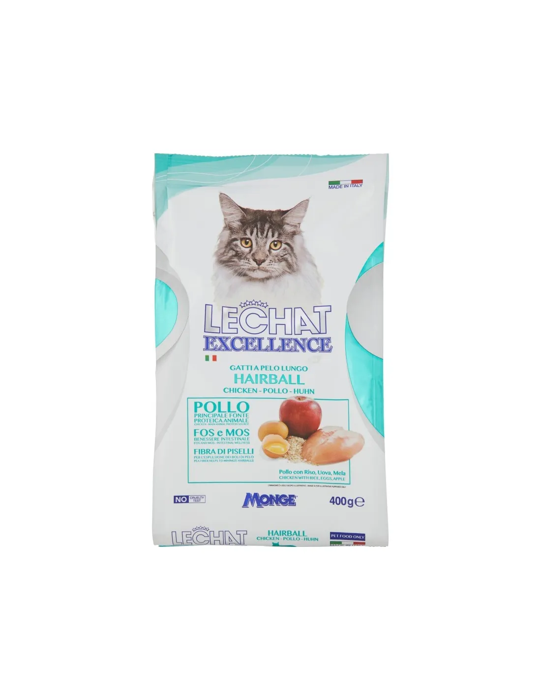 LeChat Excellence Hairball Chicken est un aliment complet et équilibré pour chats adultes, conçu pour favoriser la réduction et le contrôle de la formation de boules de poils. Ce produit combine des ingrédients de haute qualité tels que du poulet, du riz, des œufs et des pommes, pour garantir une alimentation nutritive et savoureuse.