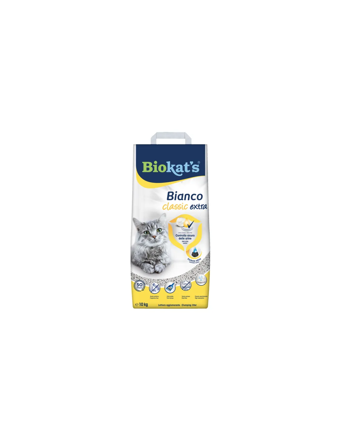 La litière Bianco Extra de Biokat est un produit de haute qualité pour chats, conçu pour offrir un environnement propre et hygiénique à votre animal. Cette litière agglomérante pèse 10 kg et se caractérise par une grande capacité d'absorption des odeurs et des liquides, grâce à la présence de charbon actif.