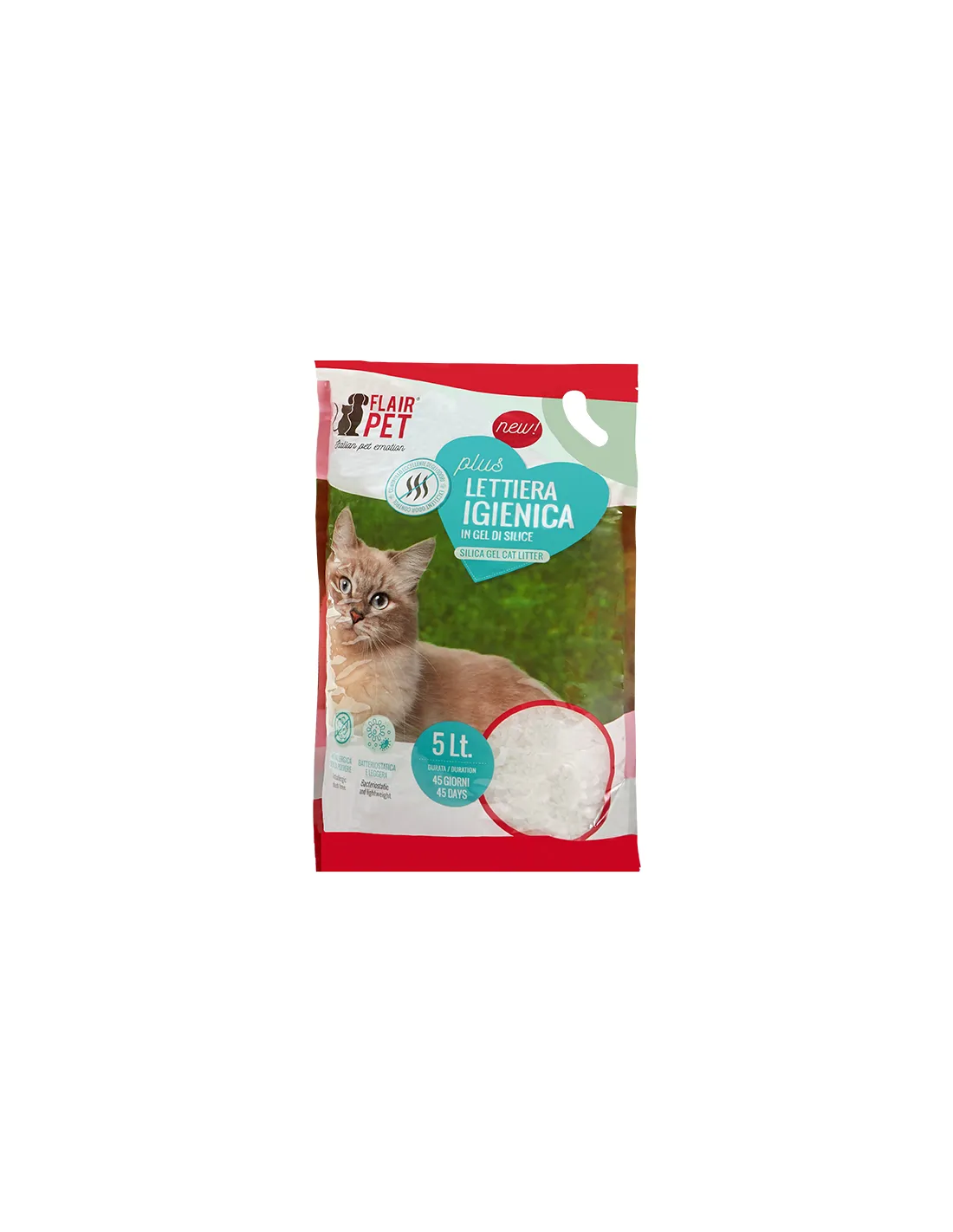 FLAIR PET PLUS LITIÈRE DE SABLE SILICIUM 5lt. NEUTRA est une litière hygiénique pour chat en gel de silice. Cette litière se caractérise par une structure qui contribue à rendre le processus d'absorption des liquides ultra-rapide, contrôlant efficacement les mauvaises odeurs. Sa formule est anti-allergique et sans poussière, ce qui la rend idéale pour les chats les plus sensibles. De plus, sa légèreté et ses propriétés bactériostatiques en font un produit de haute qualité pour l'hygiène de votre chat.
