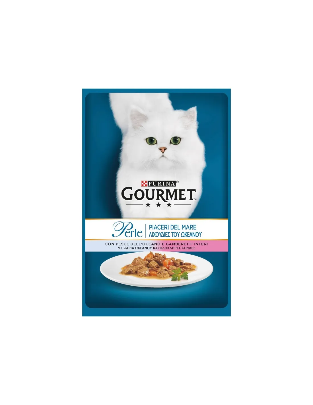 Les filets Purina Gourmet Perle Piaceri del Mare en sauce conviennent aux chats de tous âges et de toutes races. Fournit une alimentation complète et équilibrée, avec un pourcentage élevé de protéines provenant de poissons de mer et de crevettes.