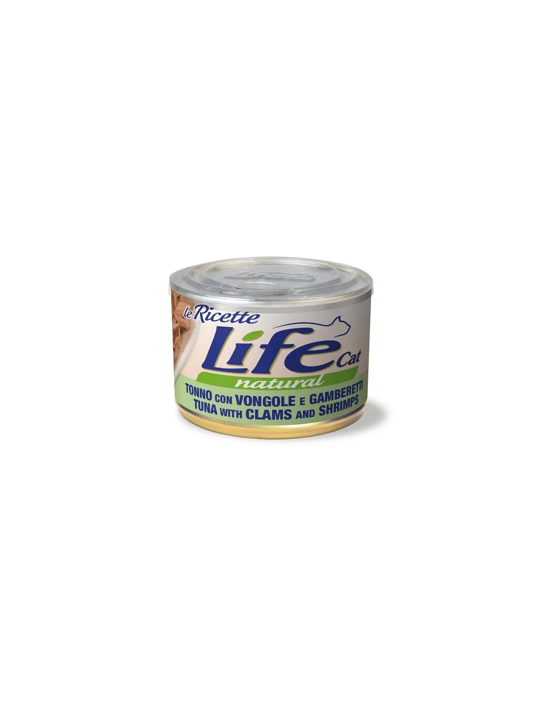 Lifecat Naturel Thon, Palourdes et Crevettes, Le Ricette 150 g est une nourriture humide de haute qualité pour chat, appartenant à la catégorie des produits pour animaux de compagnie. Ce produit se distingue par sa composition riche et savoureuse, idéale pour satisfaire les palais les plus exigeants de nos amis félins.