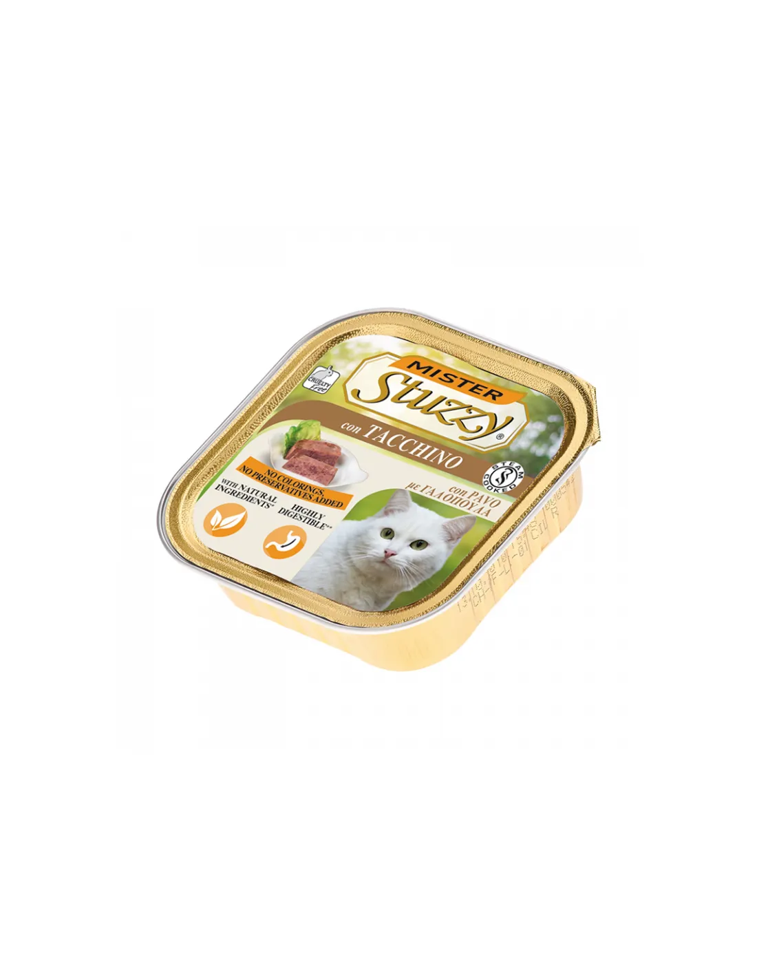 Mister Stuzzy Cat with Turkey est une nourriture humide pour chats adultes, présentée en barquettes pratiques de 100 grammes. Ce produit offre une alimentation équilibrée et savoureuse, idéale pour satisfaire les besoins quotidiens de votre félin.