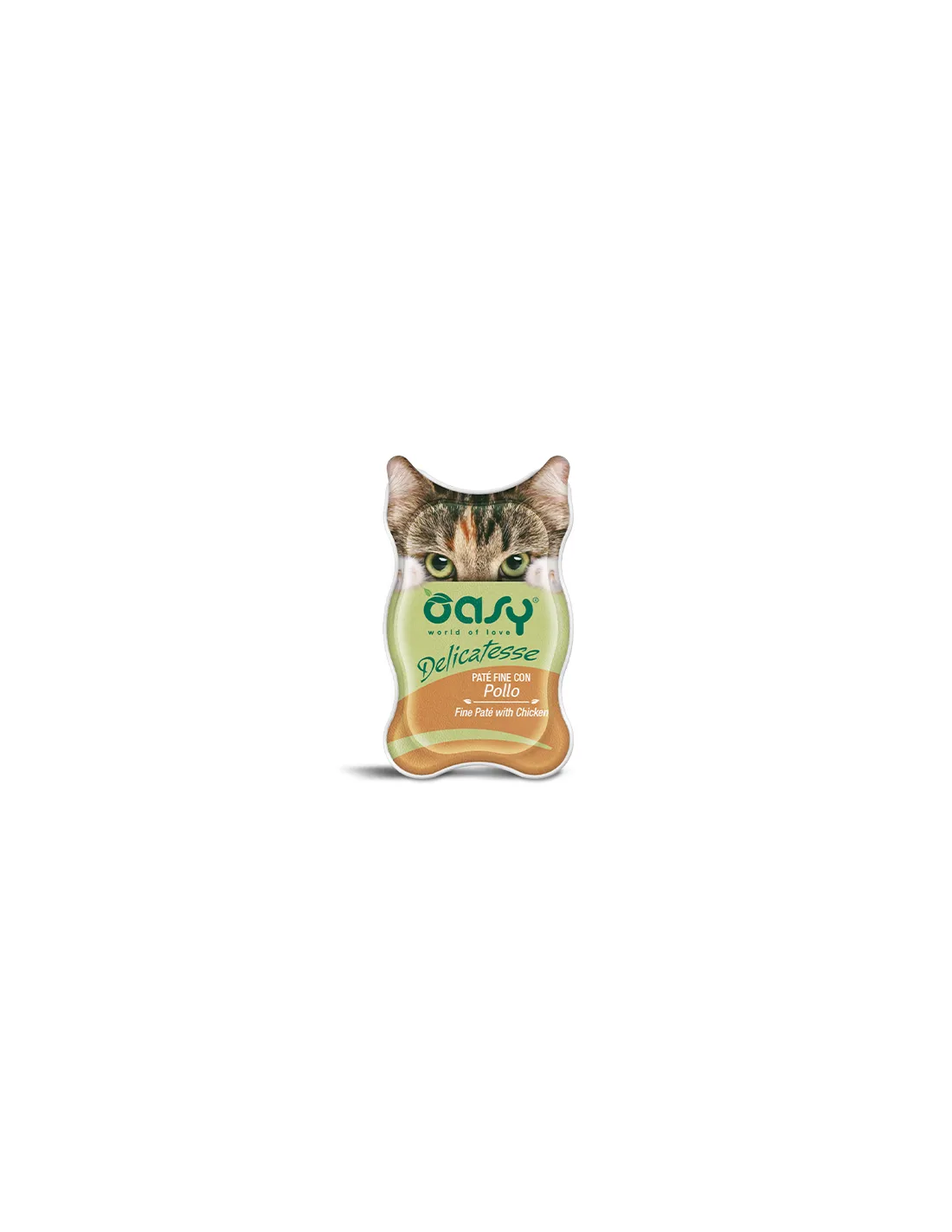 Oasy Cat Delicatesse Paté au Poulet est une nourriture humide de haute qualité spécialement formulée pour répondre aux besoins nutritionnels des chats. Ce pâté, présenté dans un barquette pratique de 85 grammes, offre un repas savoureux et nutritif, idéal pour le palais délicat des chats.