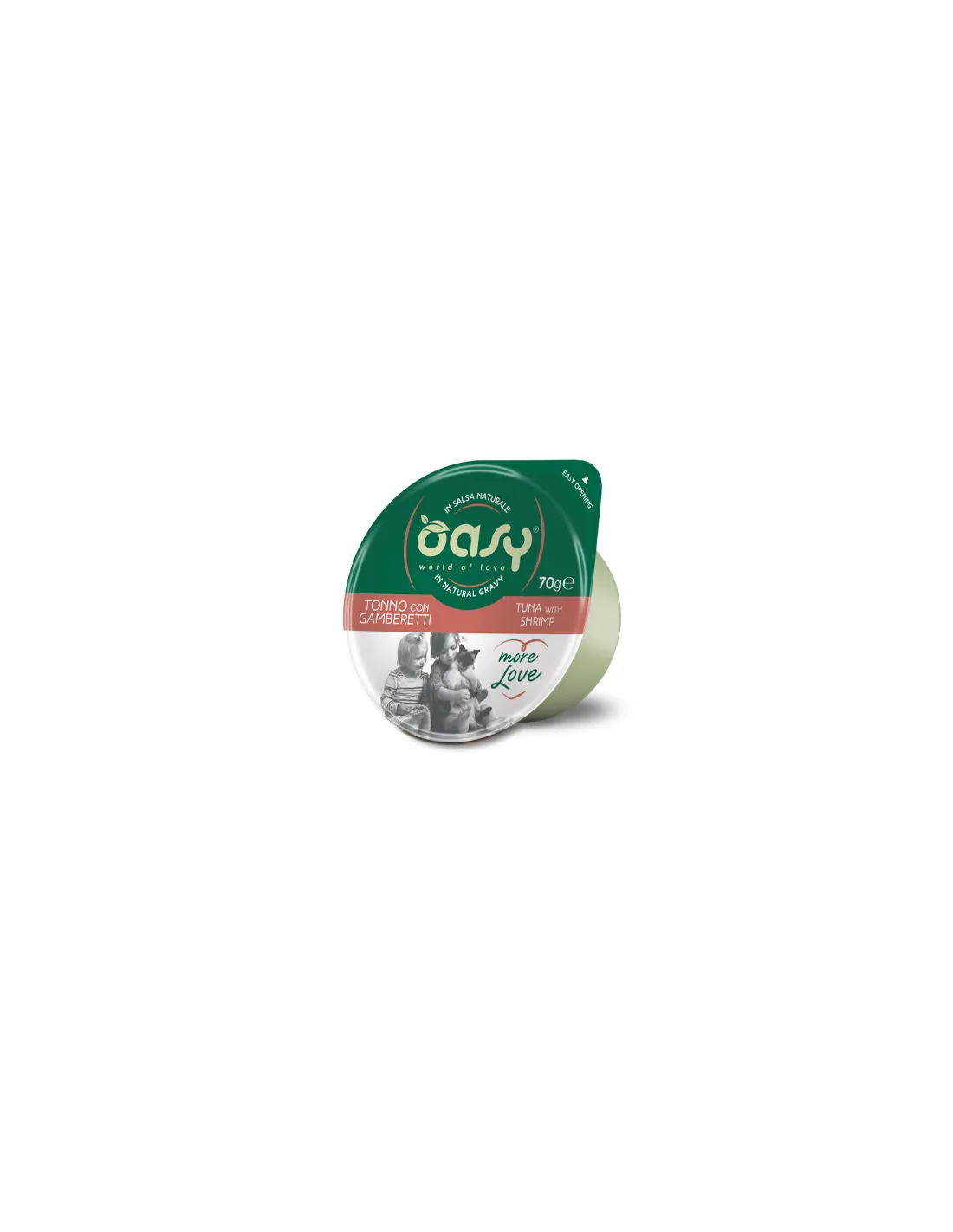 "More Love Tuna with Shrimps" d'Oasy est une nourriture humide naturelle pour chat adulte qui combine la délicieuse saveur du thon et des crevettes dans une sauce appétissante. Ce produit est idéal pour les propriétaires de chats qui recherchent une alimentation complémentaire saine et sans additifs artificiels.