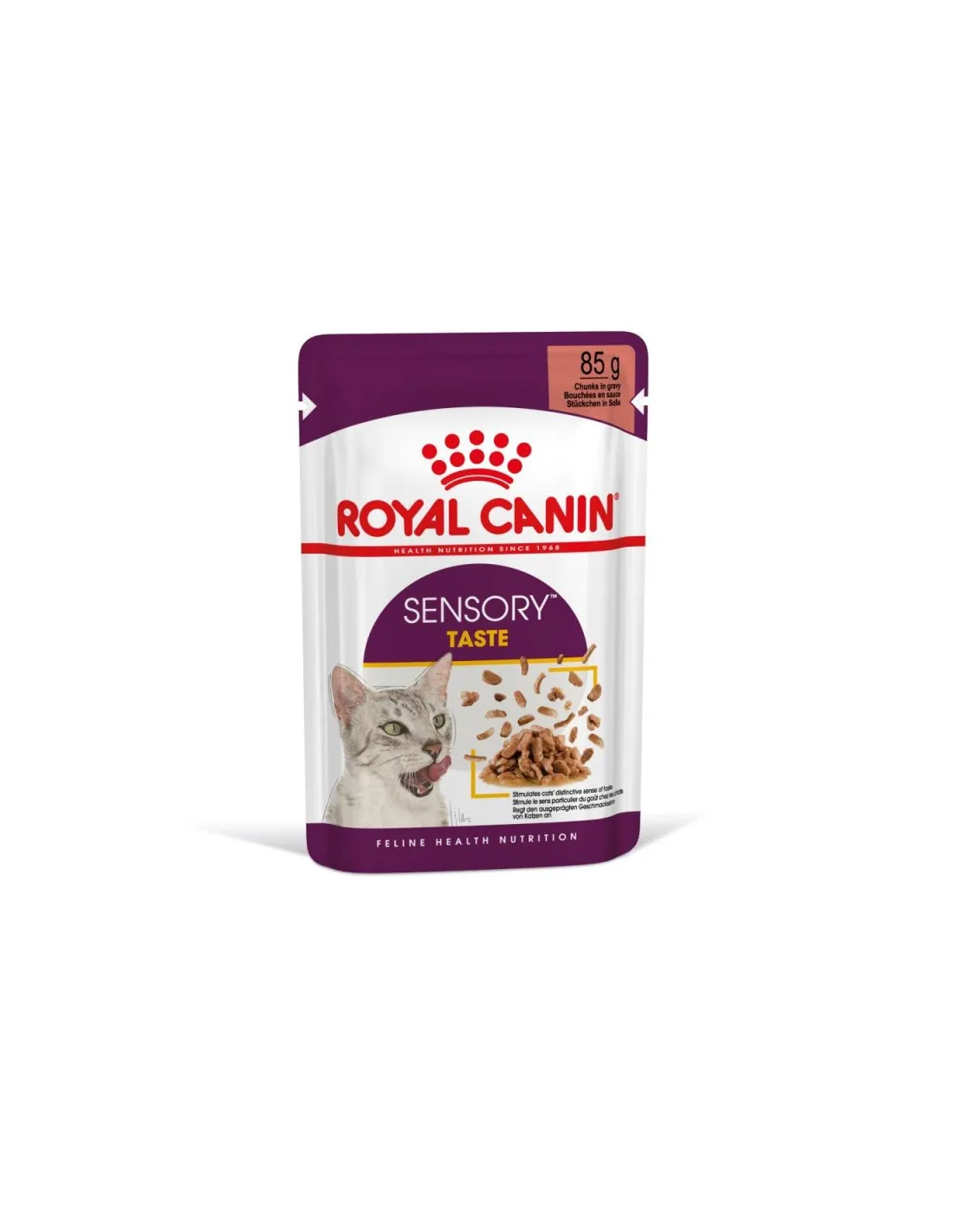Royal Canin Sensory Taste Gravy 85 gr est un aliment humide complet pour chat adulte, présenté en bouchées en sauce. Ce produit est spécifiquement formulé pour stimuler le sens du goût des chats, en leur offrant des expériences sensorielles qui améliorent leur bien-être lors de l'alimentation. Grâce à sa composition, il est instinctivement préféré par les chats adultes et favorise le bon fonctionnement du système urinaire.