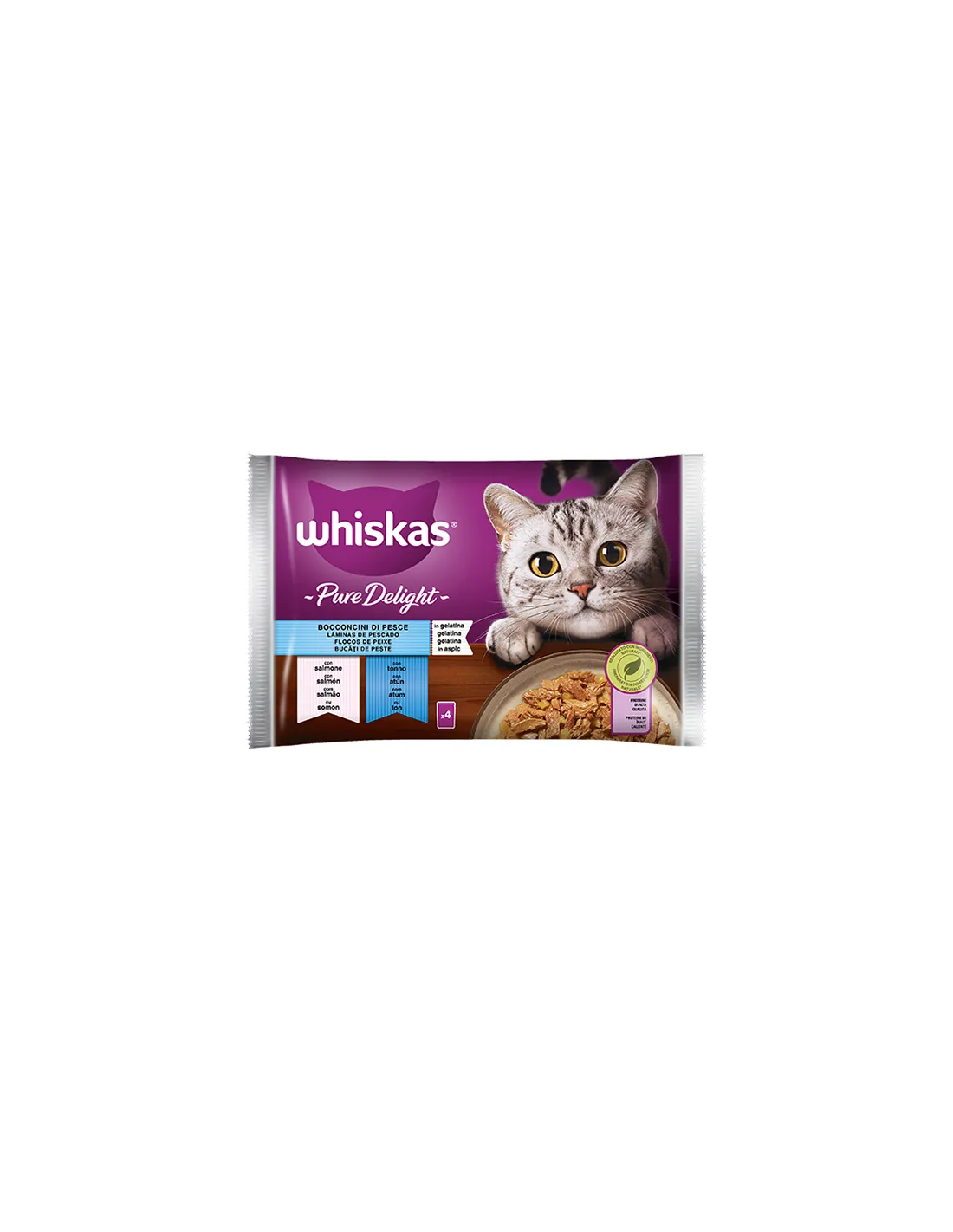 Whiskas Straccetti in Gelatine Fish Selection est un aliment complet pour chat adulte qui combine le goût irrésistible du poisson avec une texture douce et invitante. Chaque paquet contient quatre sachets de 85 grammes chacun, idéal pour conserver la fraîcheur et la saveur.