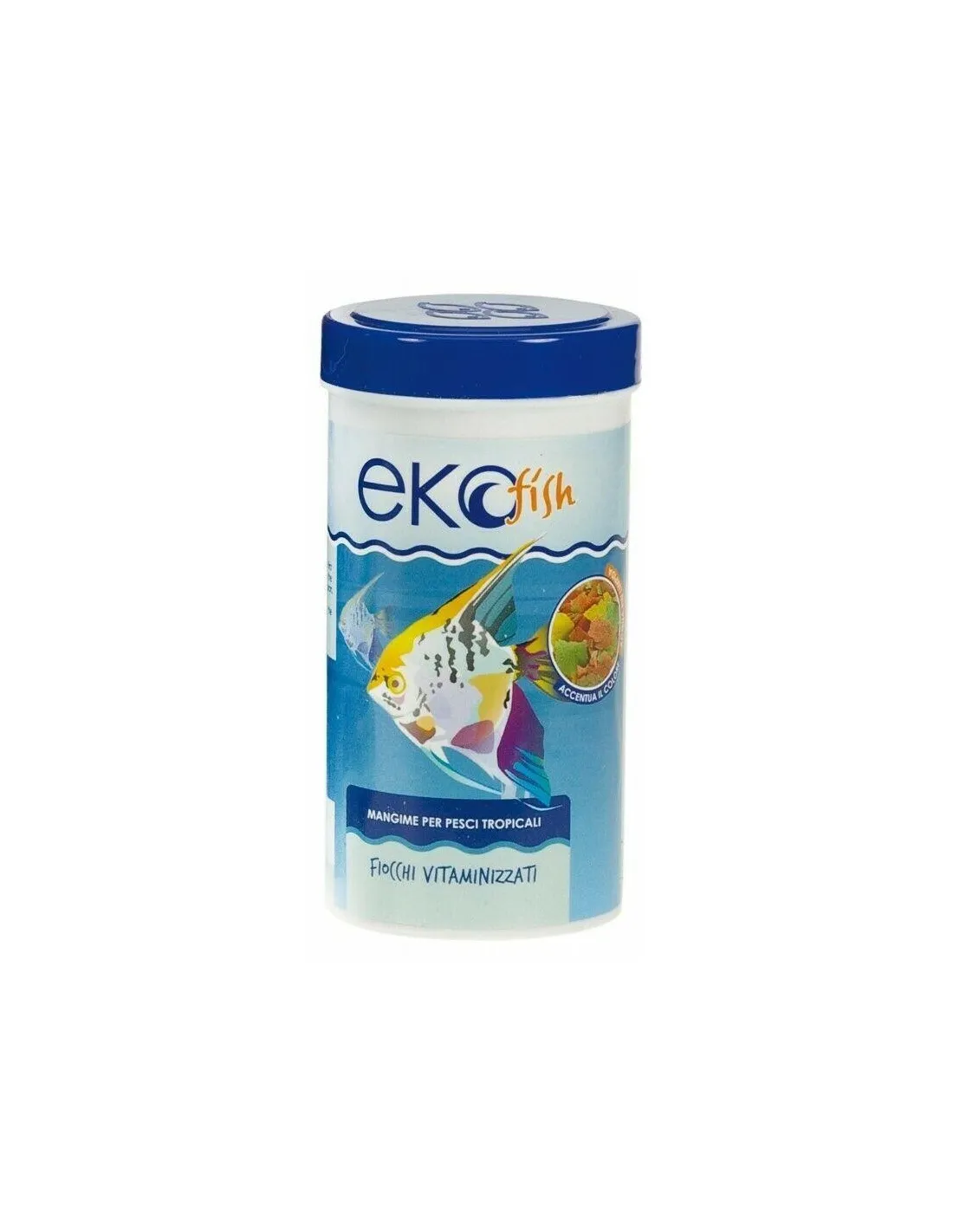Eko Fish flocons nourriture pour poissons tropicaux 1300ml/200gr est un aliment complet pour poissons tropicaux. Composé de 6 types de flocons différents, ce produit a été formulé pour répondre aux besoins alimentaires de tous les poissons tropicaux. Les ingrédients de première qualité garantissent des poissons toujours sains et une eau cristalline. De plus, le produit est enrichi en calcium, un élément essentiel pour renforcer la carapace des tortues. Le format du produit est de 200 g à 1300 ml.
