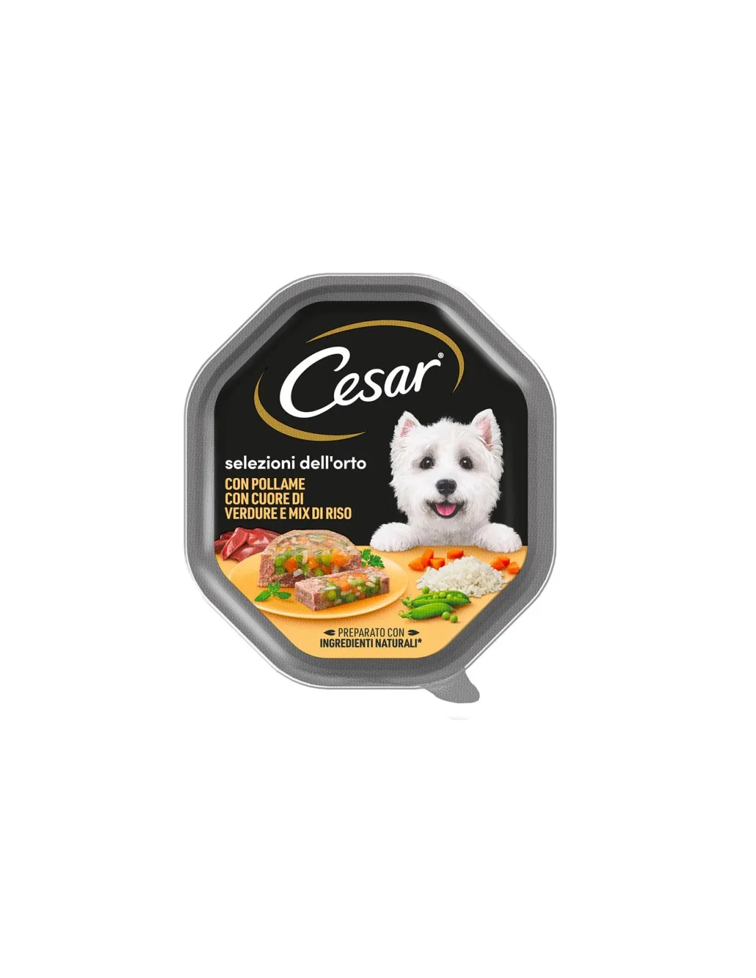 Pour une alimentation correcte, il est important d'introduire également des éléments végétaux, comme des légumes et des céréales, dans l'alimentation de votre chien, afin de lui apporter la bonne quantité de vitamines et de minéraux. Toutes les recettes Cesar® sont sans arômes, colorants et conservateurs artificiels. Pour la santé de votre chien, il est recommandé d'alterner les aliments humides avec les aliments secs, en réduisant de moitié les quantités de chaque produit.