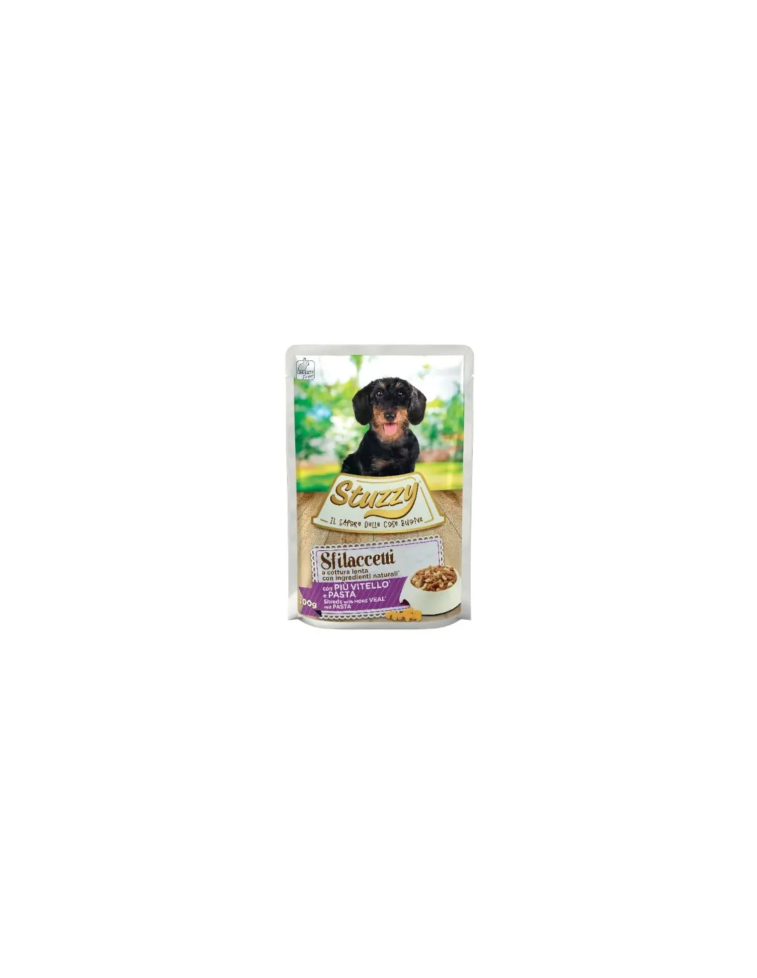 STUZZY DOG Spécialité Veau et Pâtes est un aliment complet et équilibré pour chien adulte, idéal pour offrir une alimentation quotidienne nutritive et appétissante. Ce produit est fabriqué avec des lambeaux de haute qualité, cuits à la vapeur pour conserver intacts la saveur et les nutriments essentiels de la viande. Le sachet de 100g est pratique et garantit la fraîcheur à chaque repas.