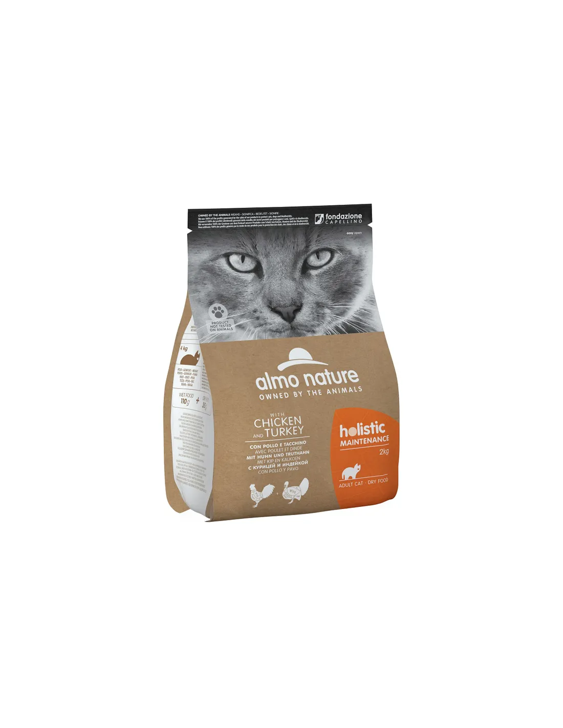 Almo Cat Holistic 2 Kg Poulet et Dinde est un aliment complet et équilibré pour chats adultes, composé d'ingrédients naturels de haute qualité.