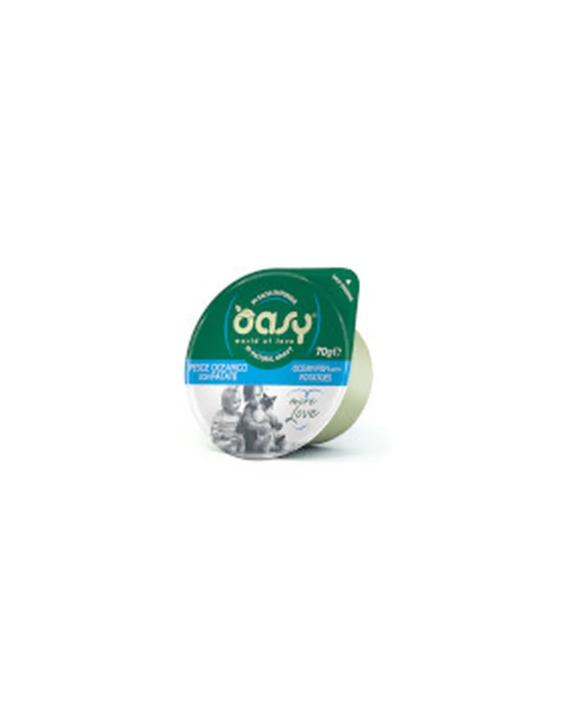 Oasy Wet Cat Mousse Pesce dell'Oceano è un alimento completo per gatti adulti che combina gusto e nutrizione in una mousse morbida e invitante. Realizzata con pesce dell'oceano, questa mousse fornisce una fonte di proteine di alta qualità, essenziali per il mantenimento della massa muscolare e per il supporto delle funzioni vitali del gatto. La ricetta è stata sviluppata senza l'aggiunta di cereali, OGM o soia, seguendo una politica di rispetto verso gli animali e l'ambiente.